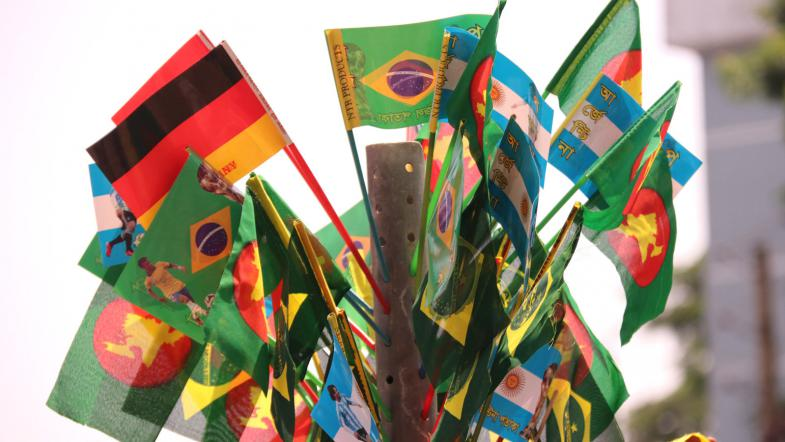 Football World Cup will start after a few days. The color of the great organized color is also in Bangladesh. Flags of different groups are being sold on the road. Bandarbazar area, Sylhet