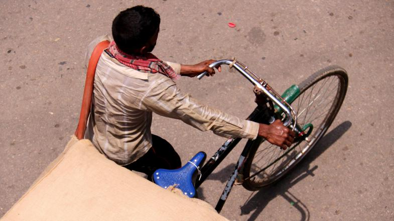 There is no scope to relax in the house because of the sunny sunlight, day-laborers One worker is going to take the product in Rickshawn. His whole body was sweat sweat. Bandarbazar area, Sylhet