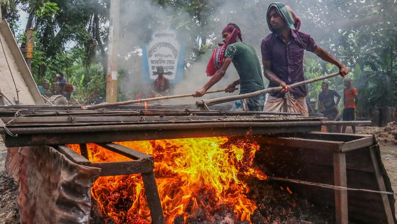 Workers are doing the job of repairing the roads with such heat. Jabusa, Rupsa, Khulna