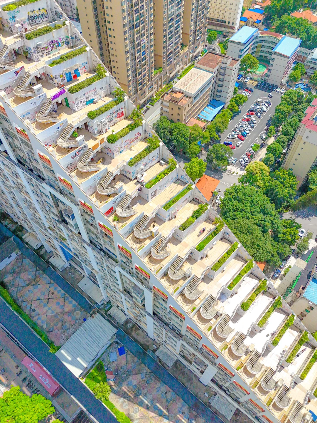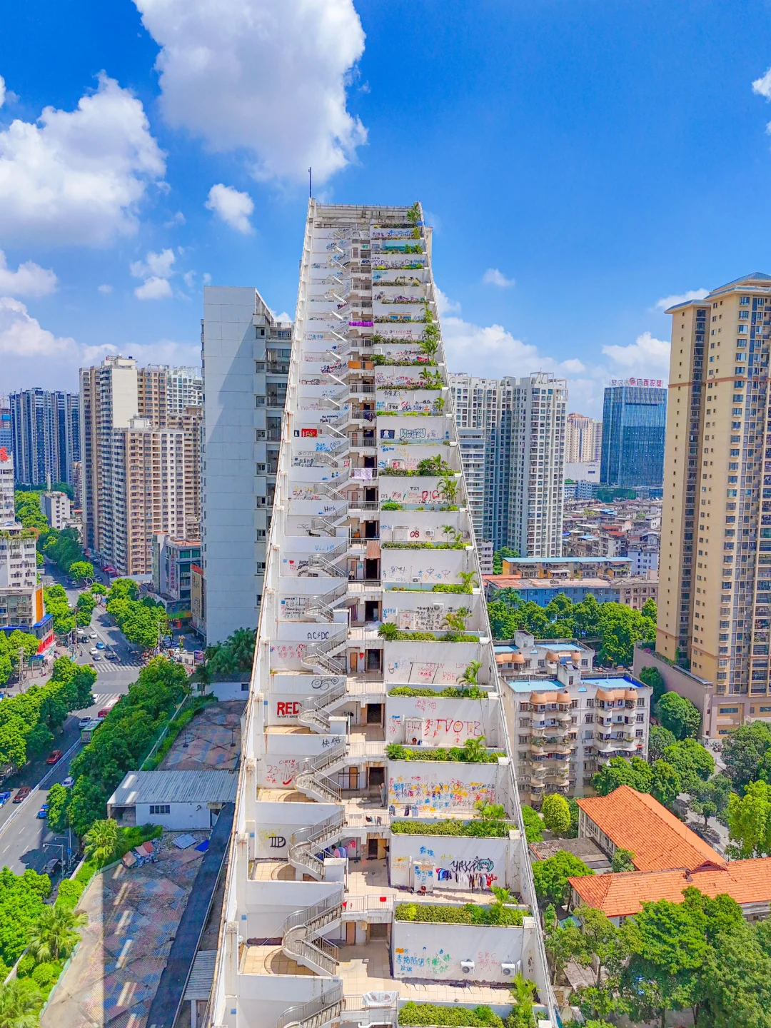 南宁,通往自由的艺术天梯zgkdsh (39)in #beautiful • 2 years ago 南宁除了鸳鸯楼,还有一栋鲜为人知特色大楼🏙️ 据说这里曾是南宁zui潮的艺术大楼 大楼造型独特,与周围的建筑形成鲜明对比 露天的阳台种满绿植、画满涂鸦 让整个老旧大楼瞬间有了青春朝气! 📍南宁华星时代广场 🚇地铁1号线「新民路站」B2出口,步行10min 这里附近没什么游玩和美食 只适合过来拍拍照 ~~ 照片都是用无人机航拍的 如果想去露天阳台拍照 可以在华星时代广场影院电梯&地下车库出入口中间的门进去,右手边有电梯乘坐至26楼,穿过走廊就到了! #tourism
