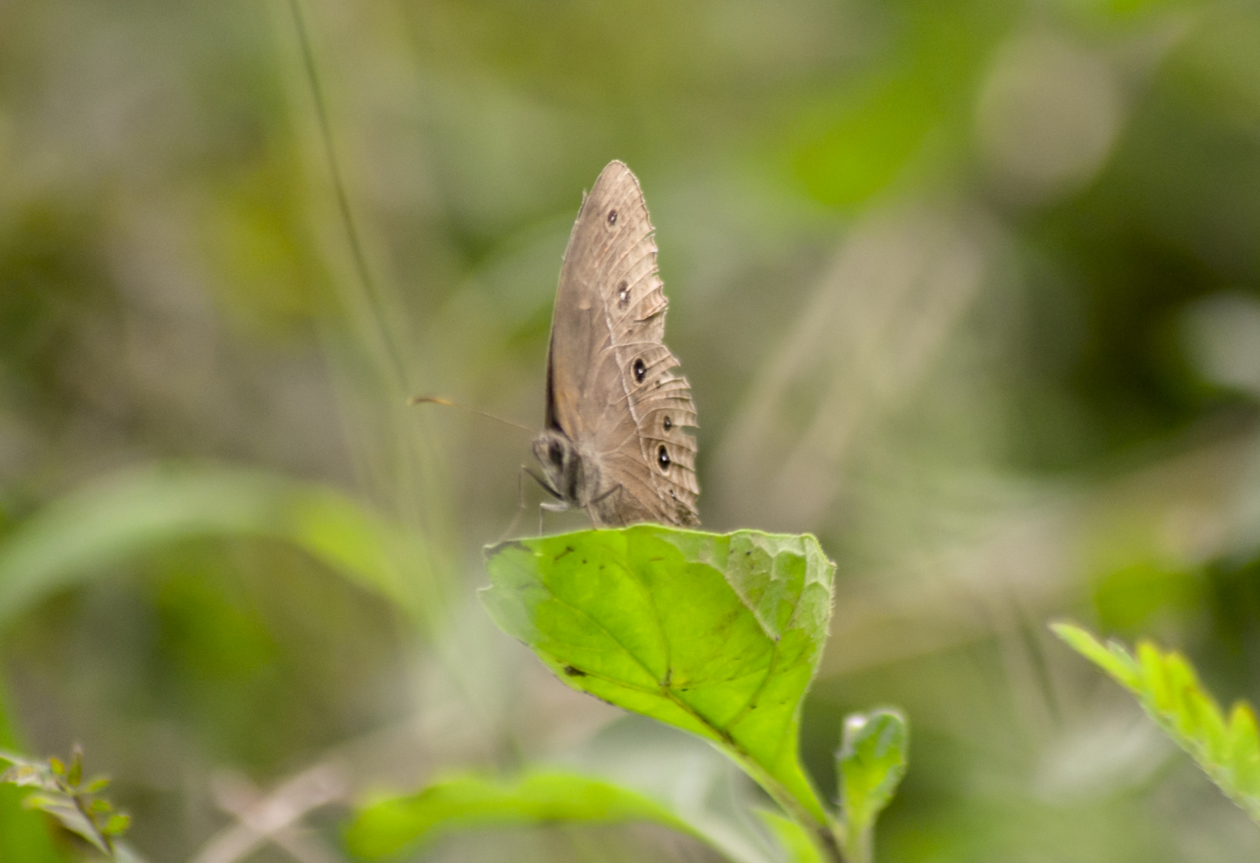 This typical butterfly is easy to recognize as a group, all being some shade of brown on both wing surfaces, and marked with a series of conspicuous ocelli, and a single straight median line across the underside of both wings.