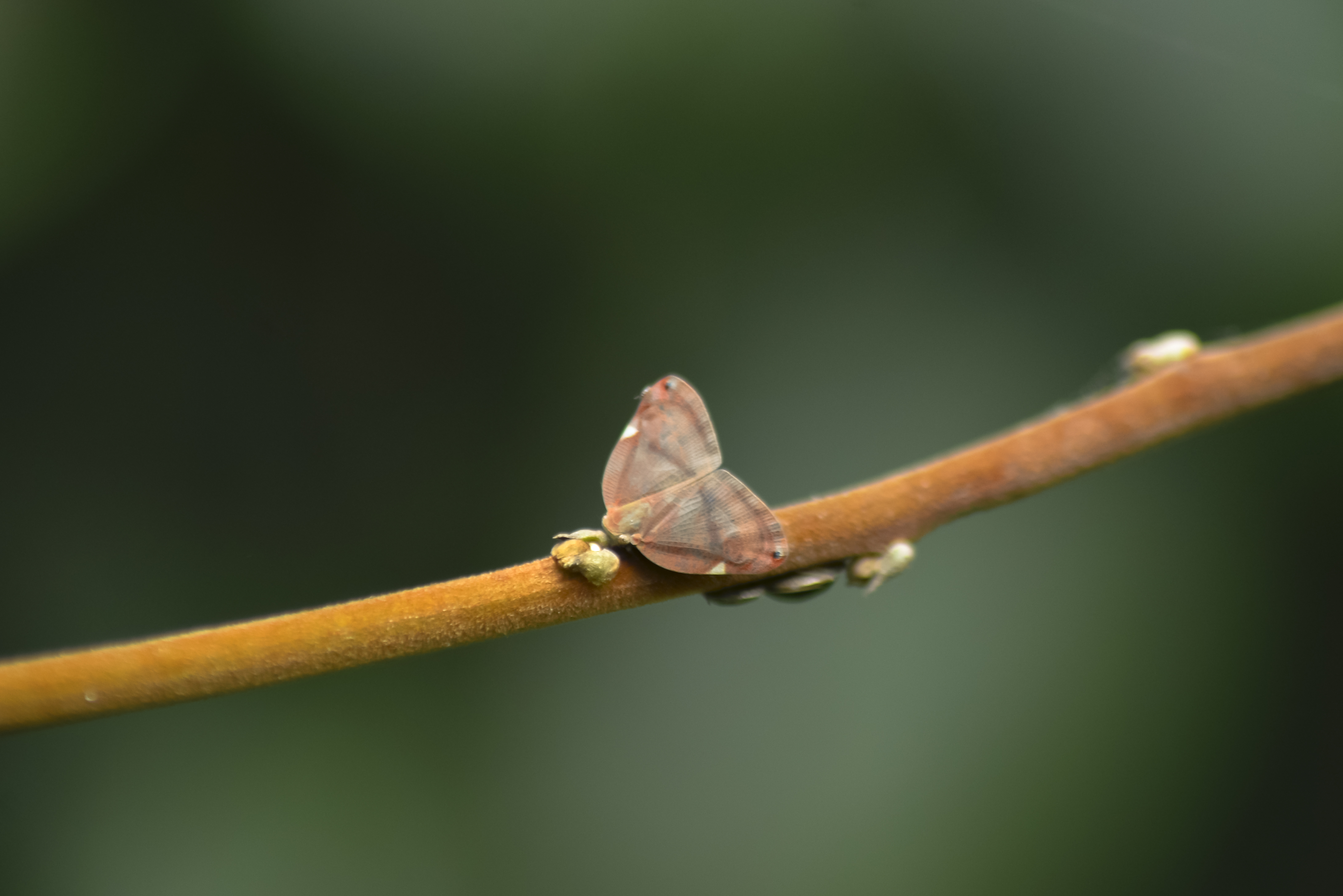 Leafhoppers secrete brokomes, nanoscale granules that make them hydrophobic, anti-reflective, and antimicrobial, inspiring new technologies. This time I did not go to the far place, but I decided to walk around my neighborhood. So, I took a short walk to the bush along the village street. Although I often find the same objects, they always look different to me, especially the places they hang out and the ways they expose themselves in the bush. So today's insect is going to be a leafhopper, the day I found it, perched on the leaf, staring at me with its two black eyes. It is considered a common insect that lives near people, and is easy to find hanging out around the bush, but its appearance often tempts me to take shots. Although I often found the same objects, they always look different to me, especially the place they hang out and the way they expose themselves in the bush.