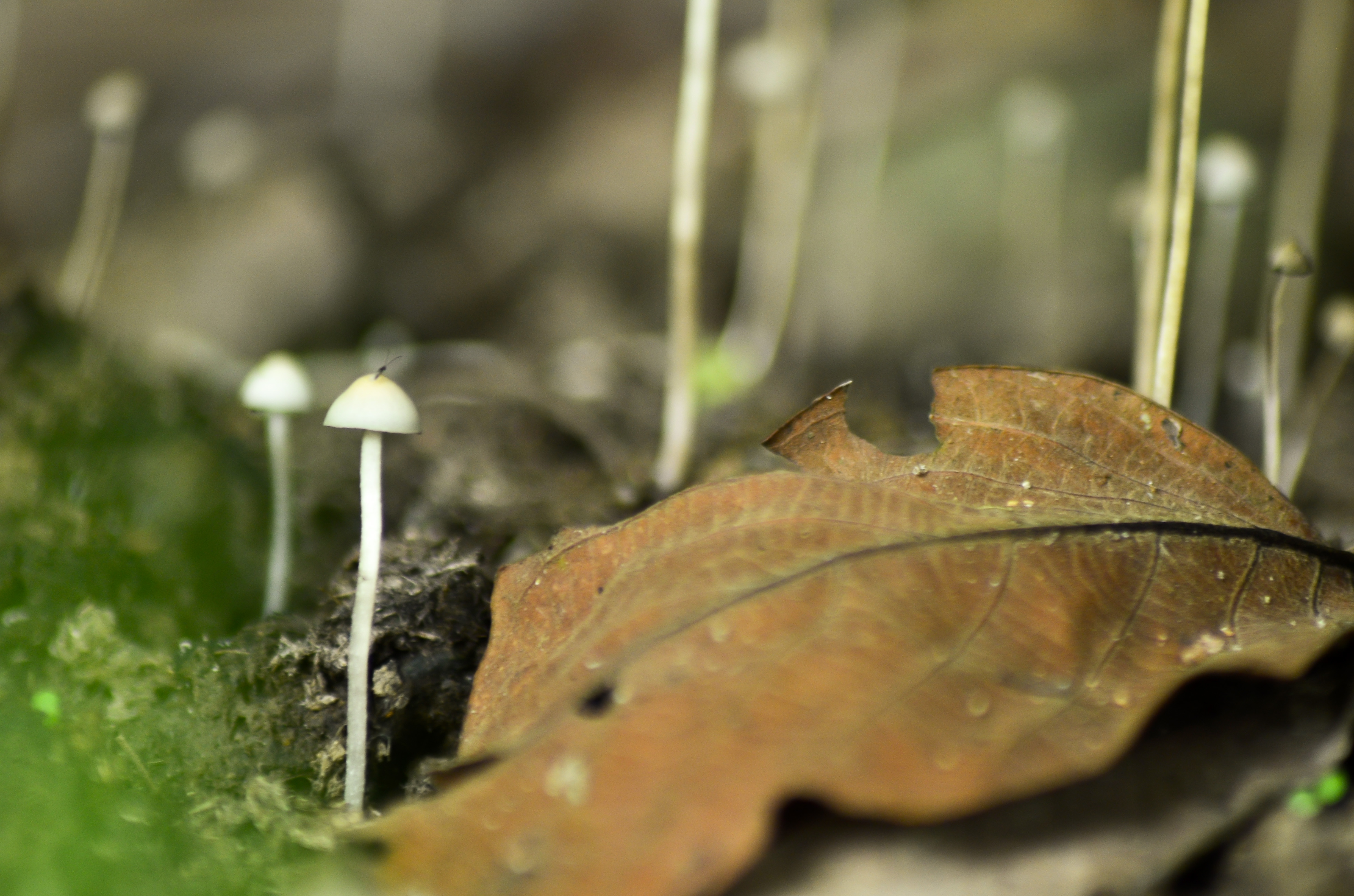 I found them when I was on the way to look for another object in the bushes. These mushrooms are growing on the humid ground, they grow freely for certain period. If we look from distance, they have nothing to be proud of, but if we come closer, there was something that tempted me with their look, especially the shape that resembles to the little parachutes.