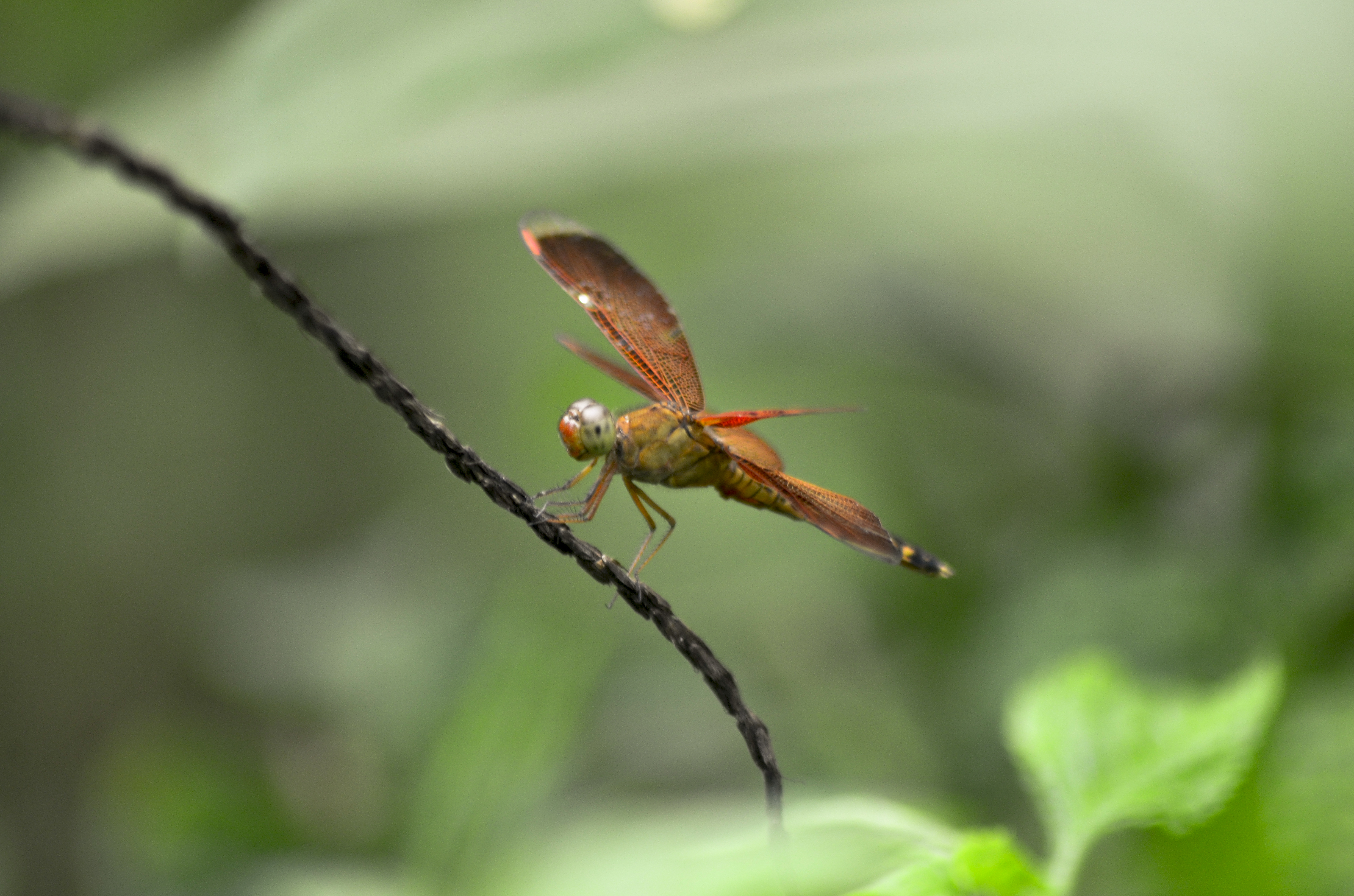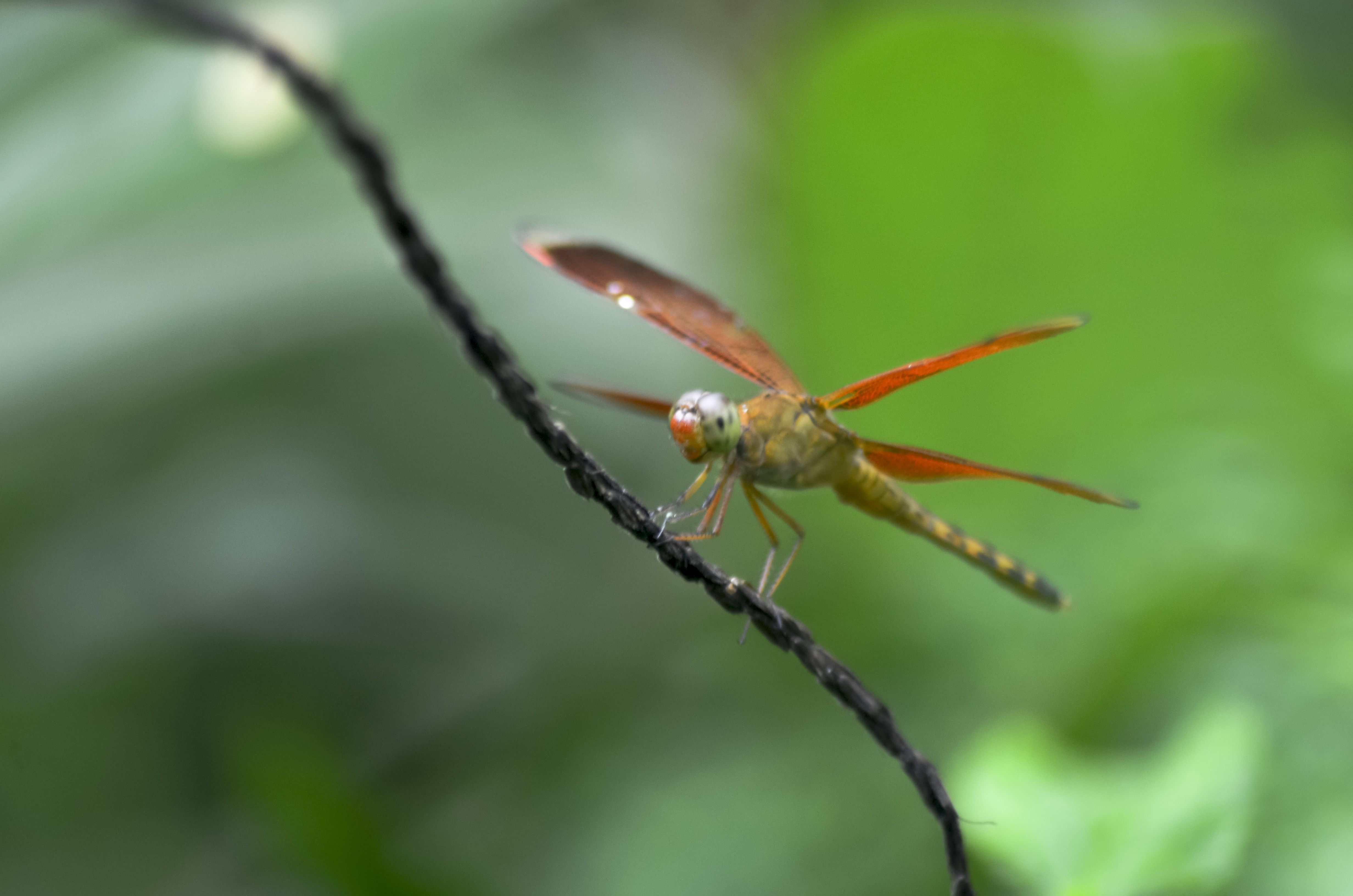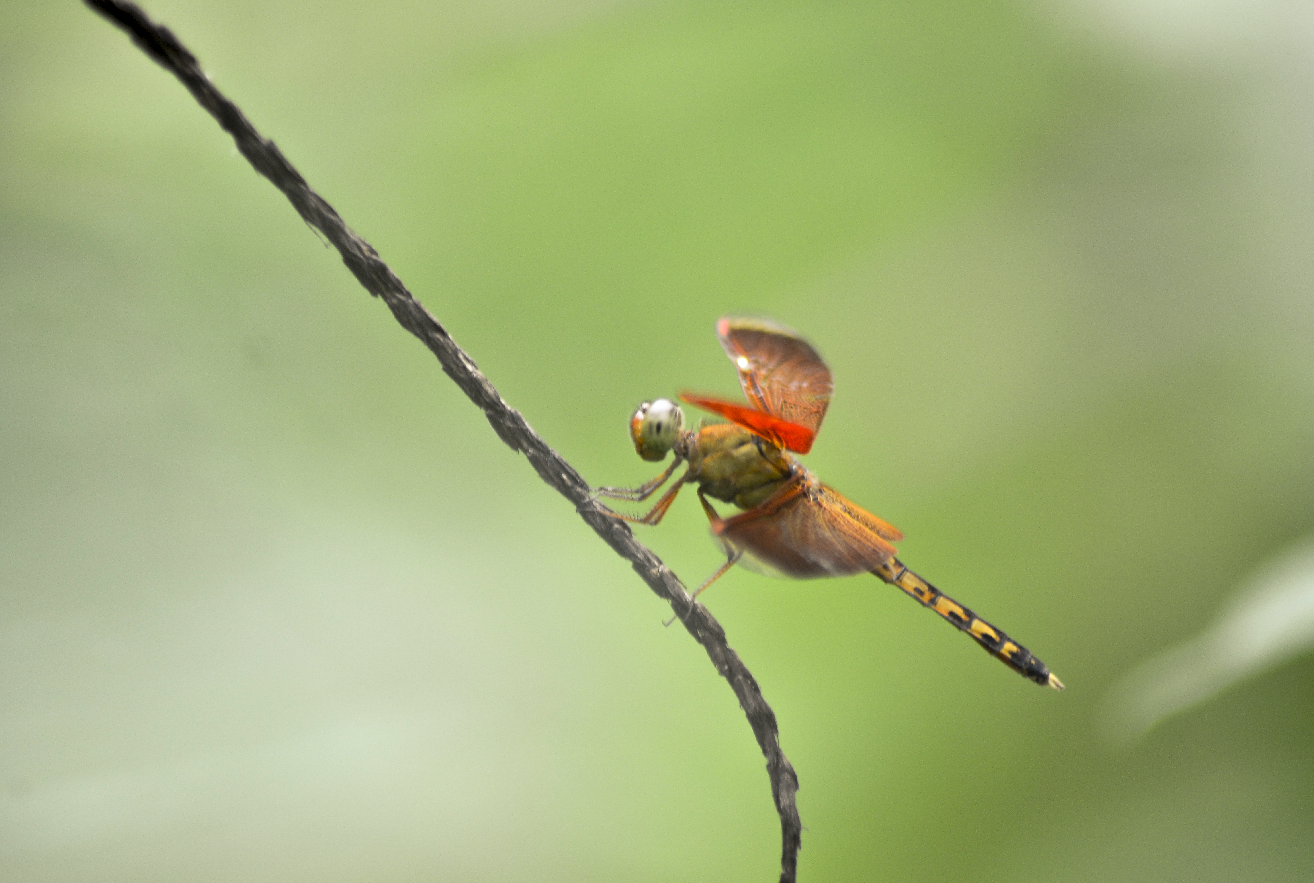 Not long after that, right after being done shooting, it flew away. I guessed I was lucky this time. Dragonfly has various colors, one of them is red. This color has attracted me to get a couple of shots of its look. In order to get the full shape, I had to be careful to approach to its front.