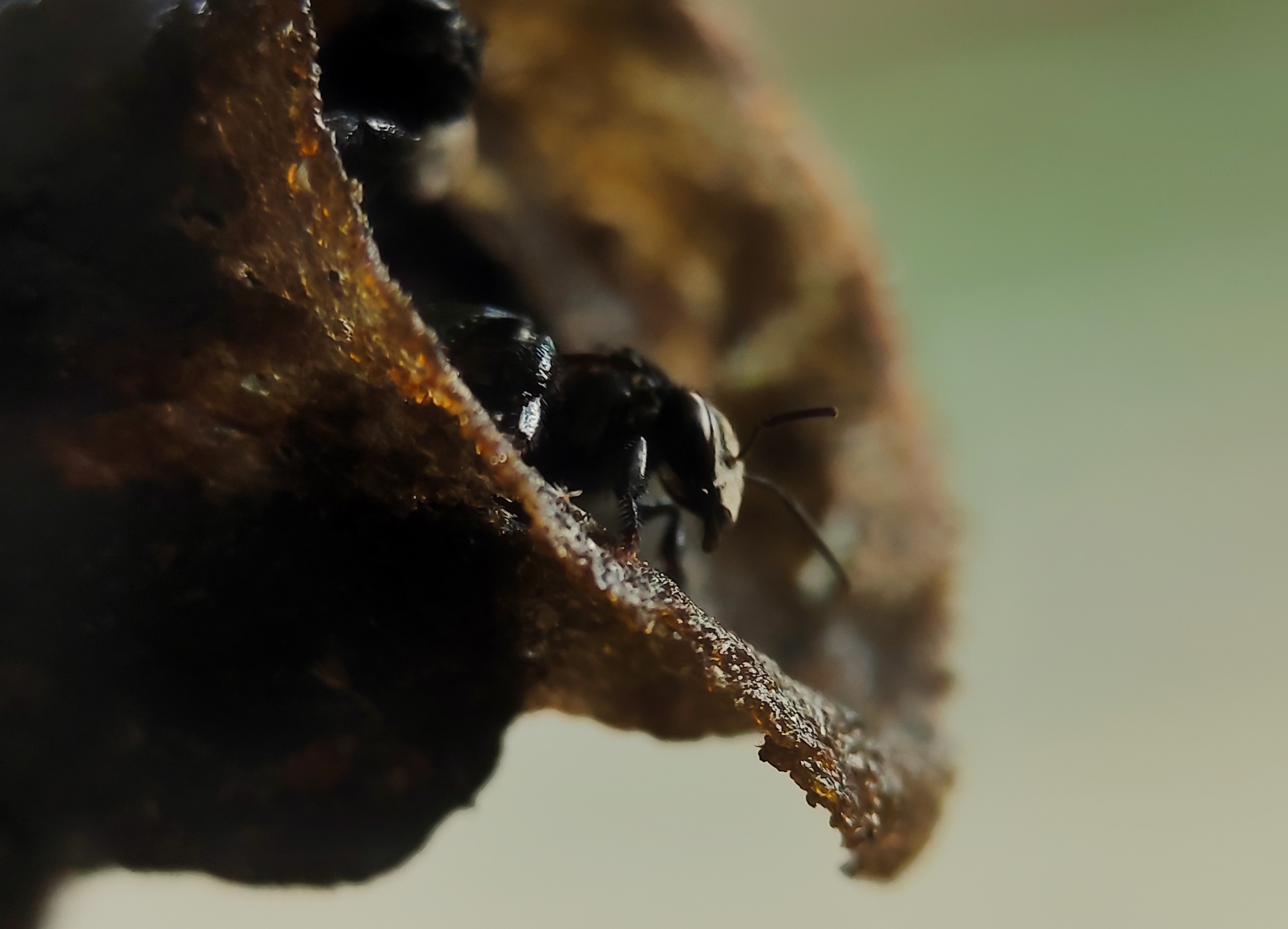 You are very brave to photograph the bee. And the pictures you share are clearly visible even though the bee is black.