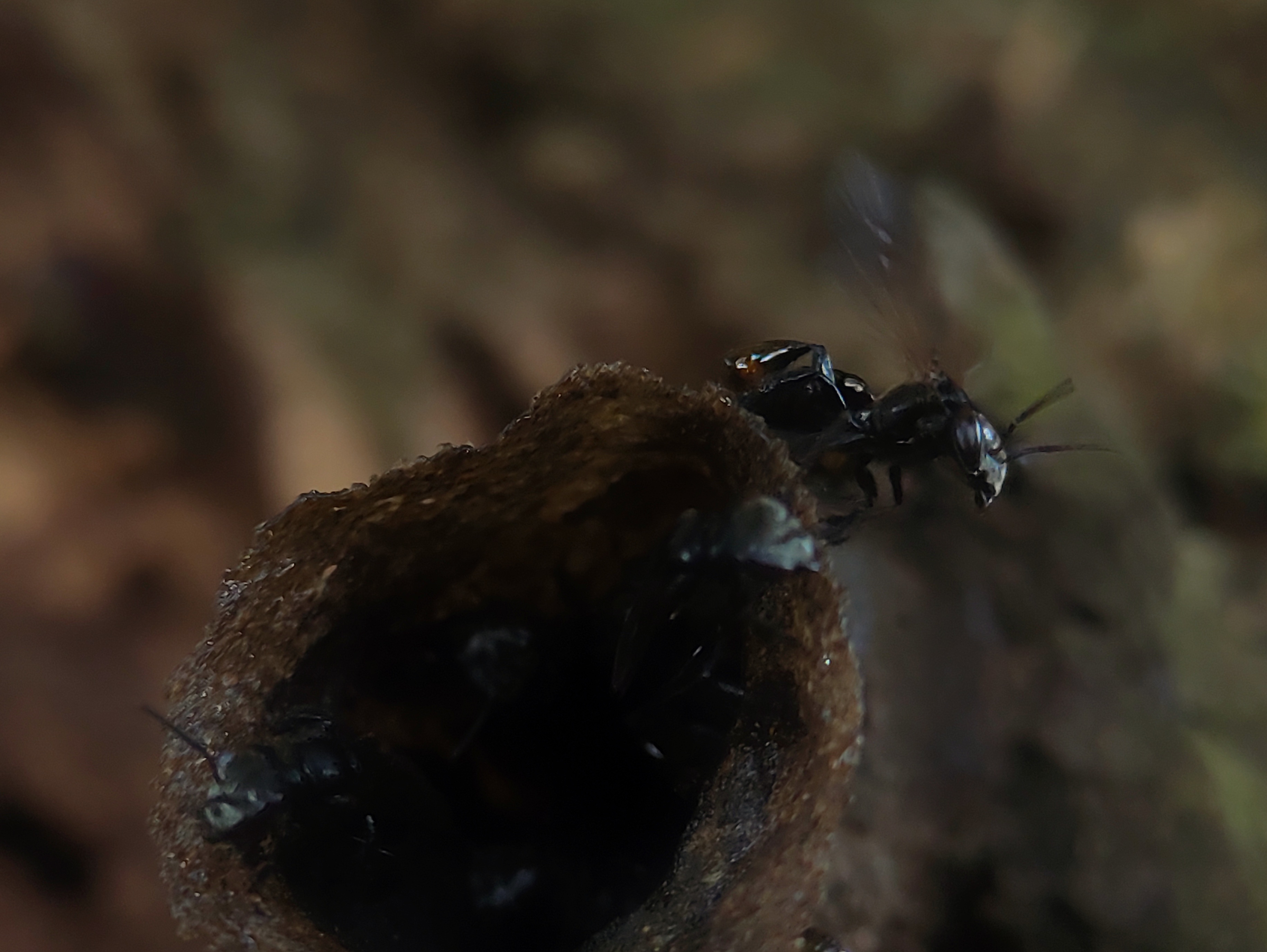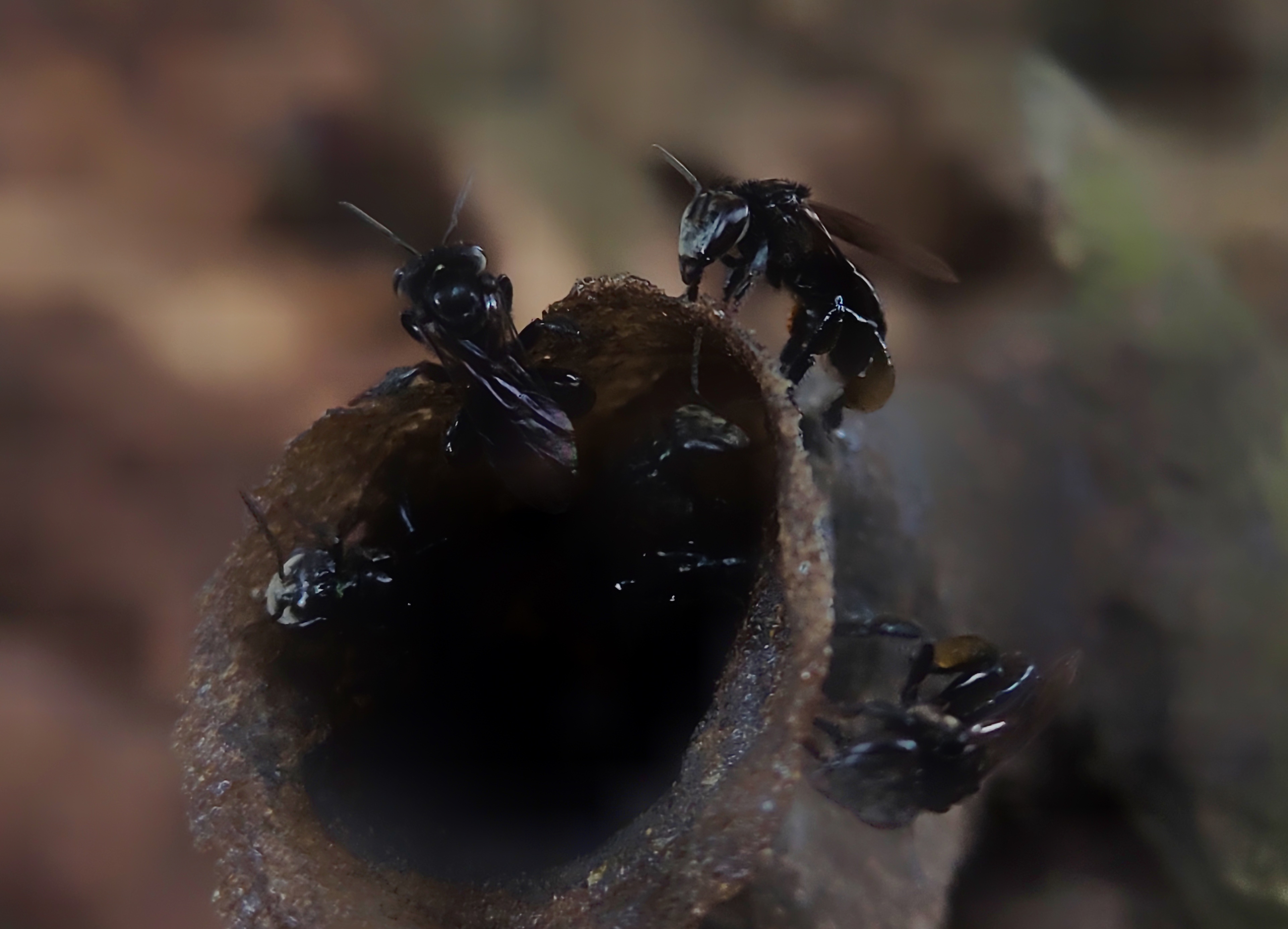 Hello everyone! On this fine occasion, I am delighted to come up with another little species of bees, very well known as stingless bees that look similar to honey bees and they are not dangerous as they dont sting but they are typical bees that dont like to be disturbed. These bees are considered as very important pollinators that used to pollinate garden blossoms, bushland, and crops during their quest for pollen and nectar.