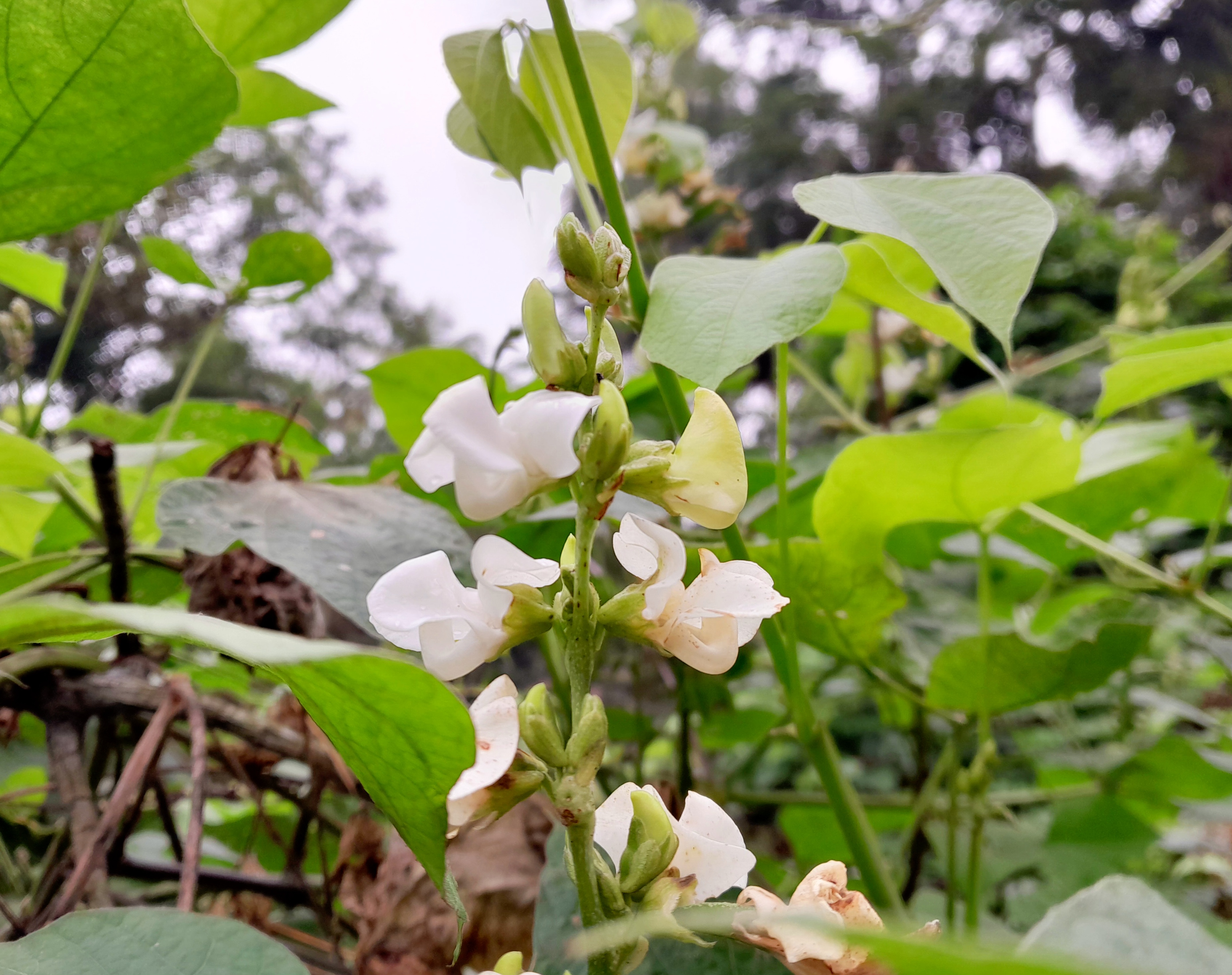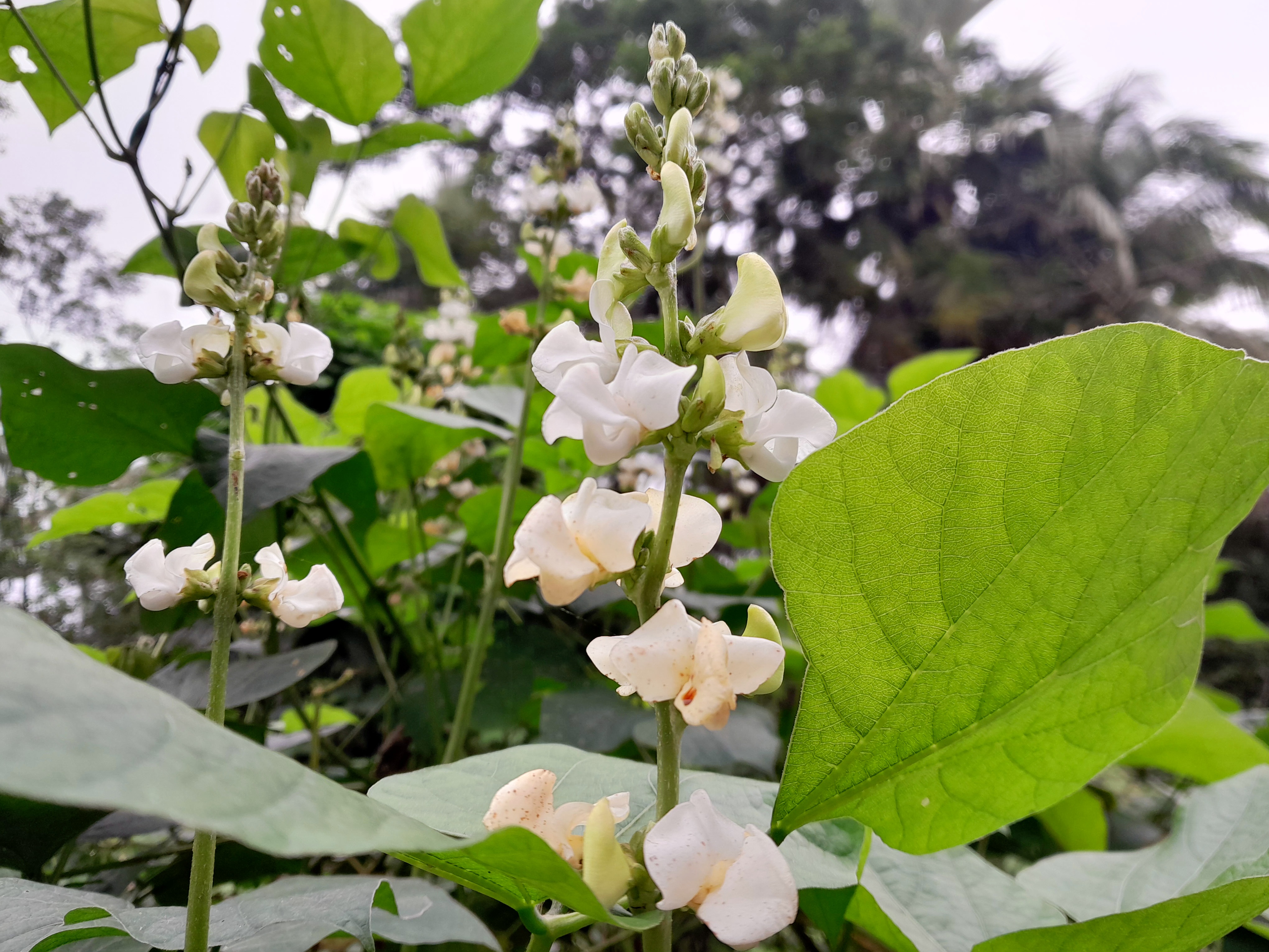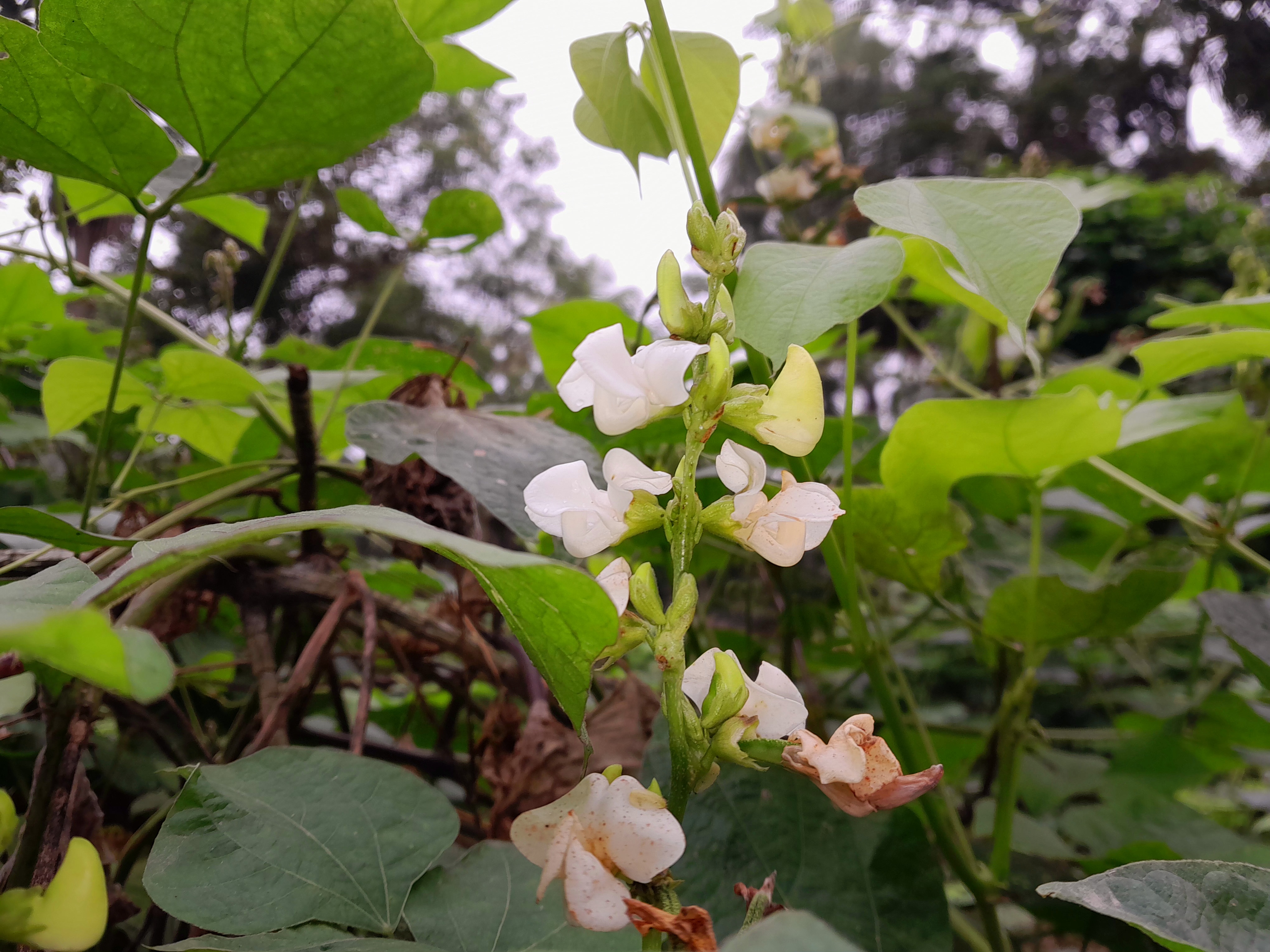 I saw this flowering plant when I was walking in the madrasa. This tree was planted in their land there. And very beautifully this flower bloomed on the vine of this tree. When this white flower bloomed, the beauty of the tree became extraordinary.