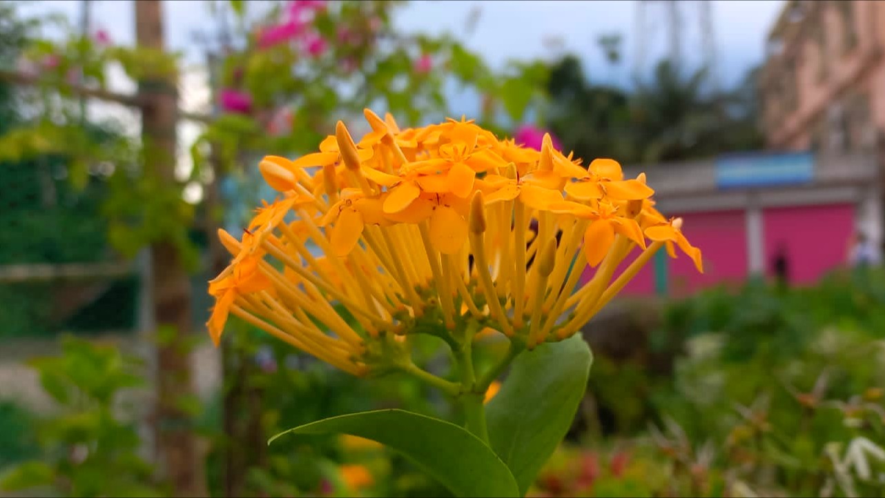 This flower looks very beautiful. Rangan flowers are usually red and sweet in color. I have seen this yellow colored flower after a long time. This colorful flower was very amazing to look at and everyone was looking at this flower.