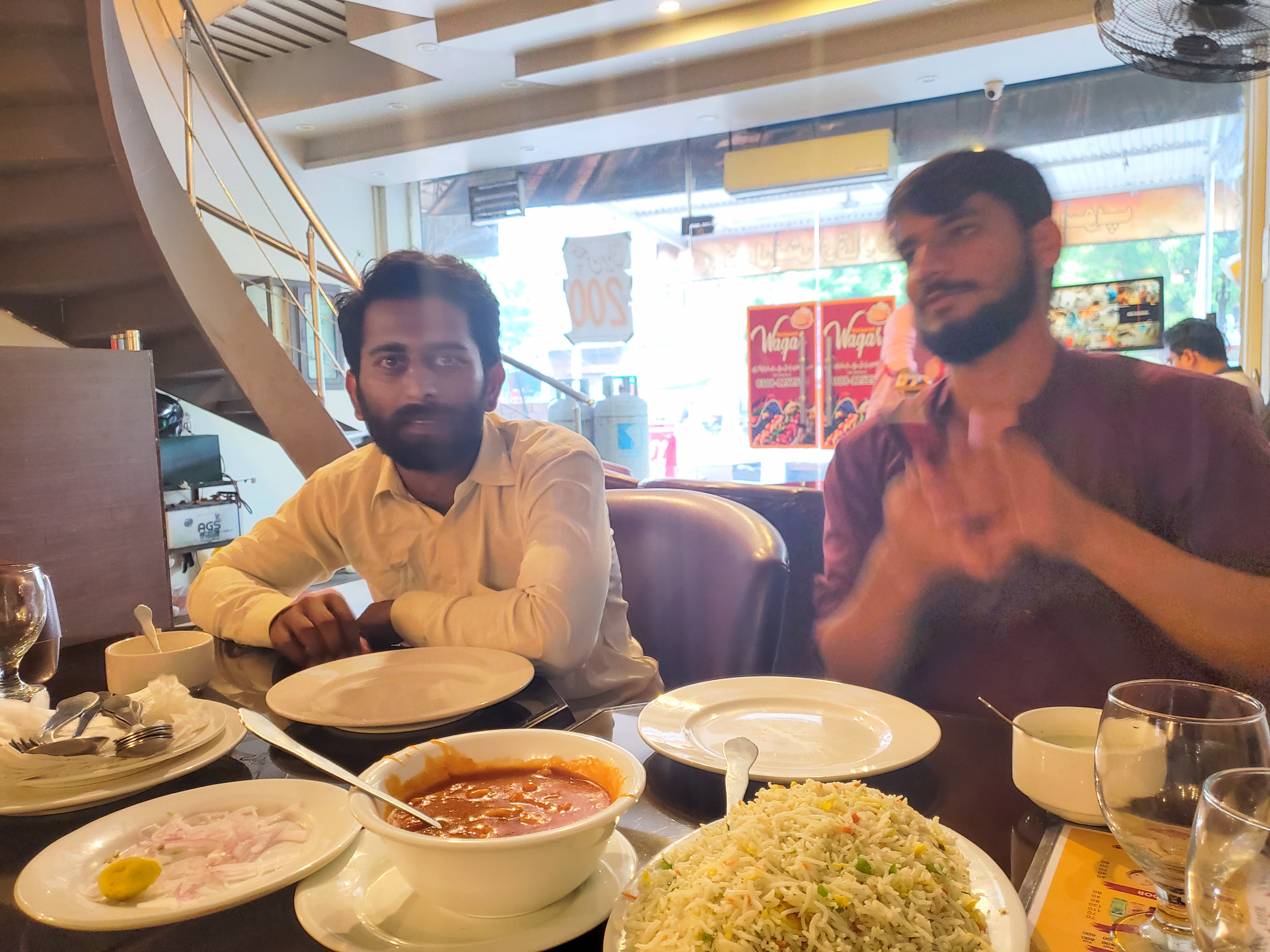 2 more fellows join us in the hostel and we decide to go to a restaurant to have a nice lunch. We go to a restaurant and order rice and white chicken. It was a very delicious meal. We all enjoy the lunch. In the end, we come back to the university and had a cup of tea in the university shop.