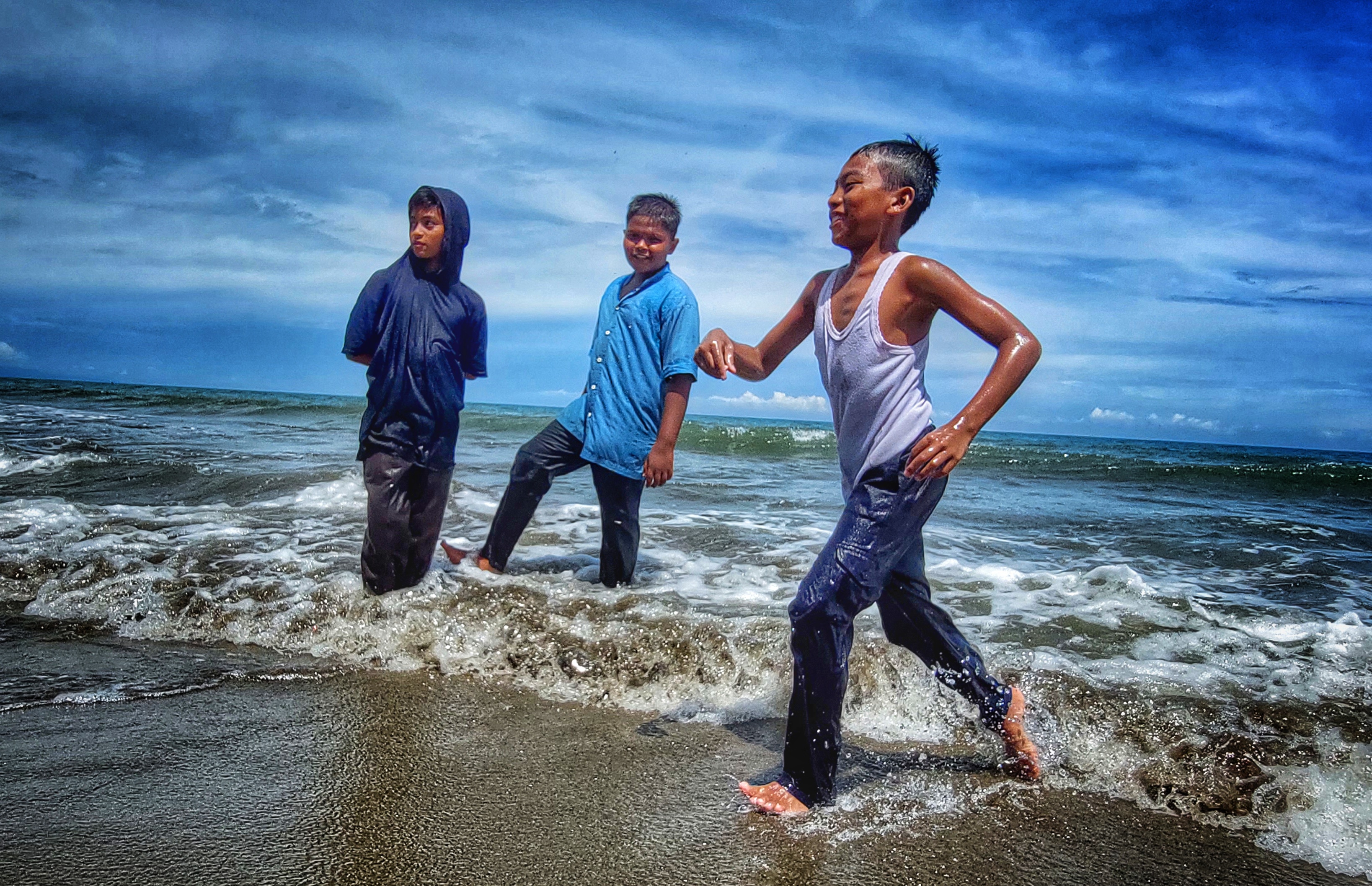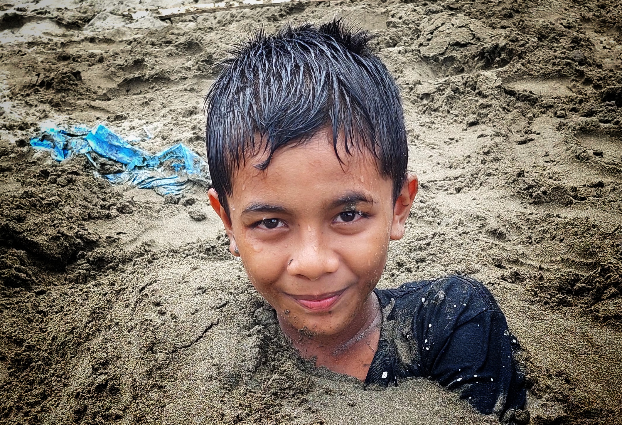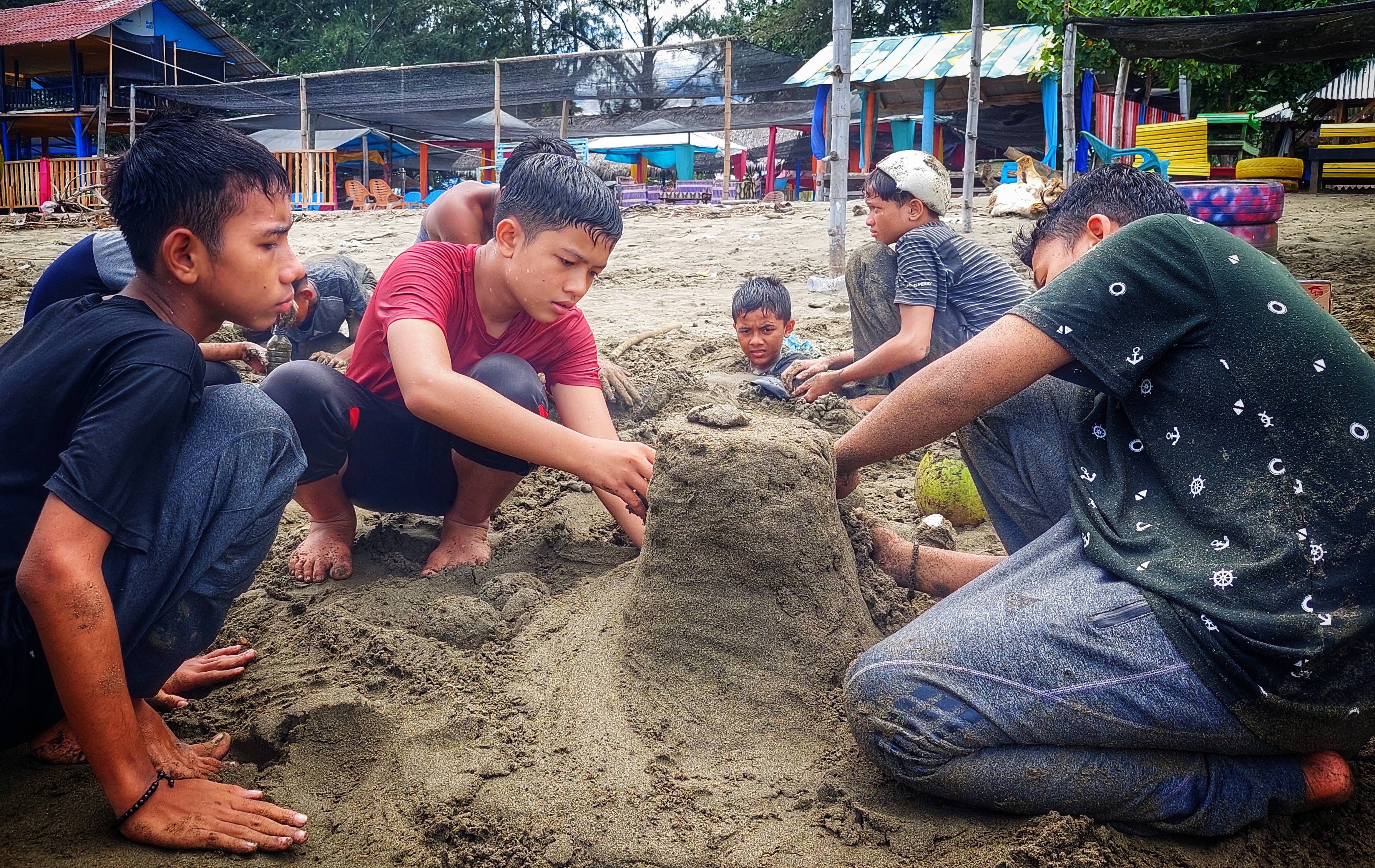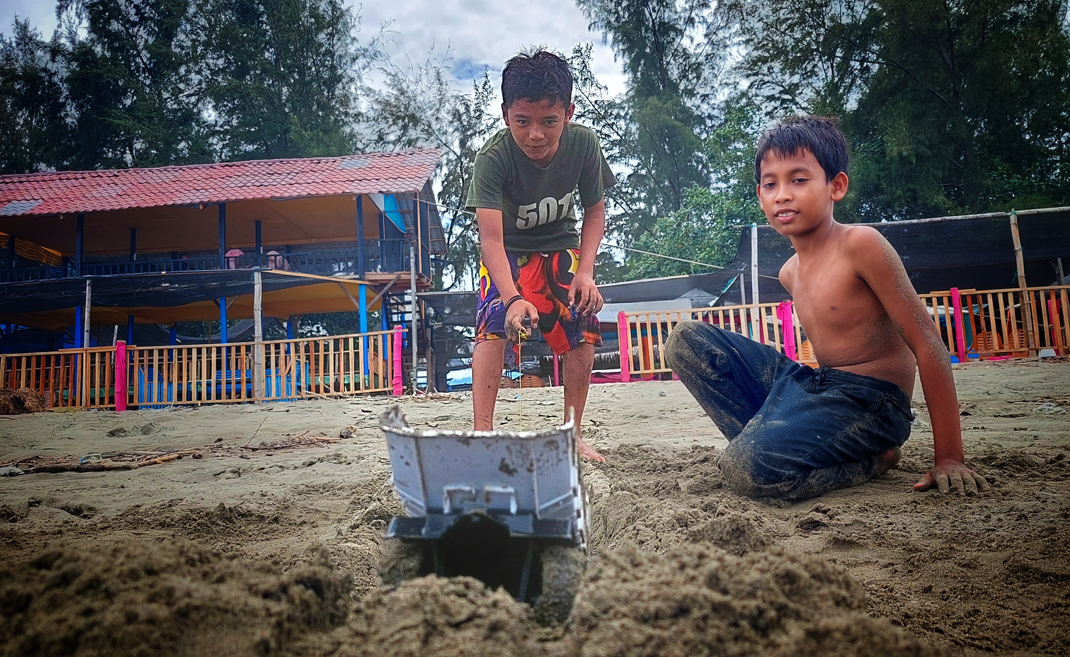 Tangkapan sangat indah yang memperlihatkan kesenangan anak-anak ketika bermain pasir di pantai. Kerja bagus kawan