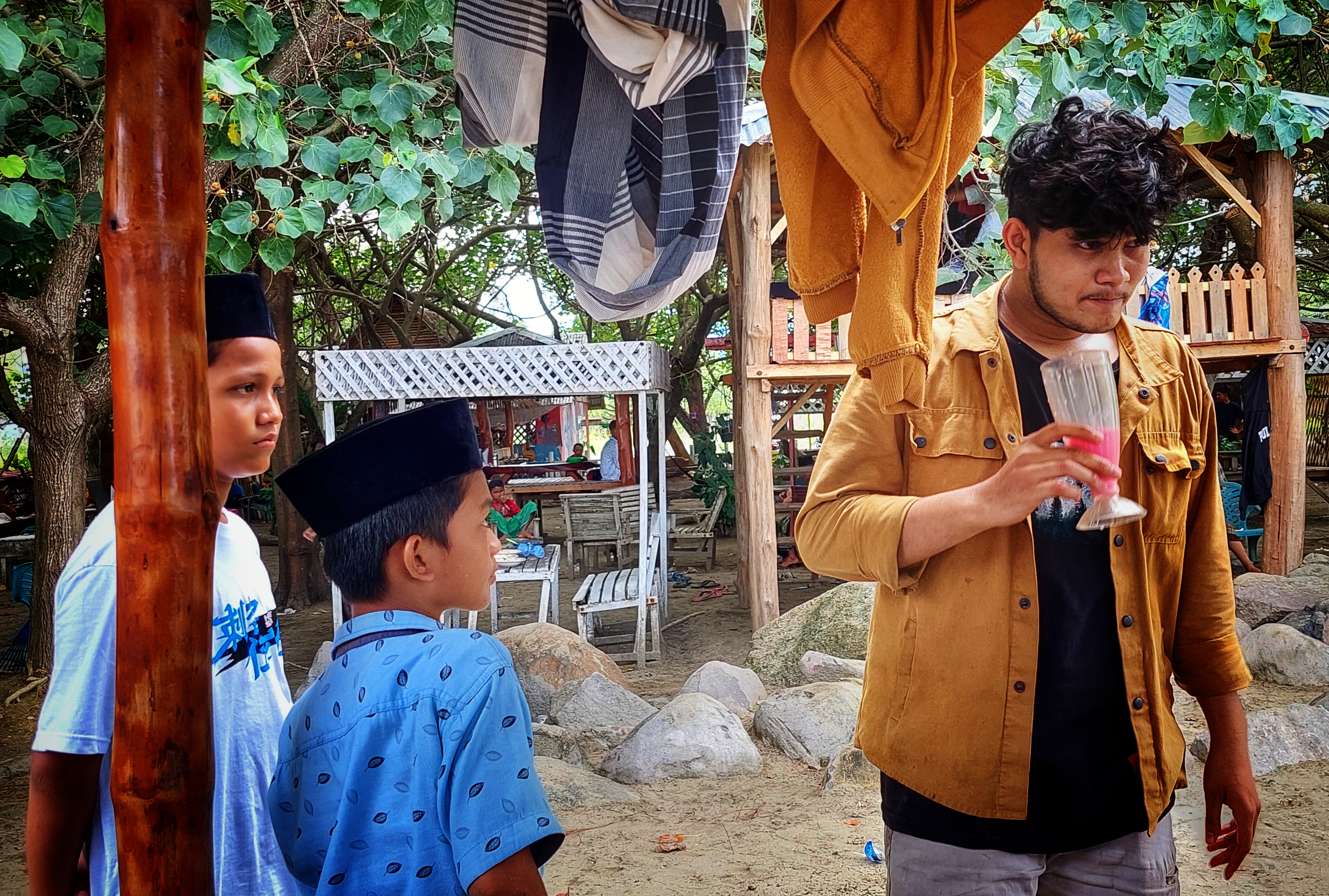 Yesterday we went to one of the beaches in Aceh, namely Manohara beach, this beach is located in the city of Meureudu. Our goal here is to have a vacation with our students, where we held a grilling chicken event together. After lunch we continued to play ball together and take a shower, after that we went back to the Islamic boarding school.
