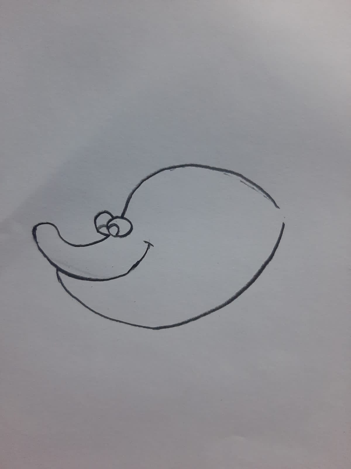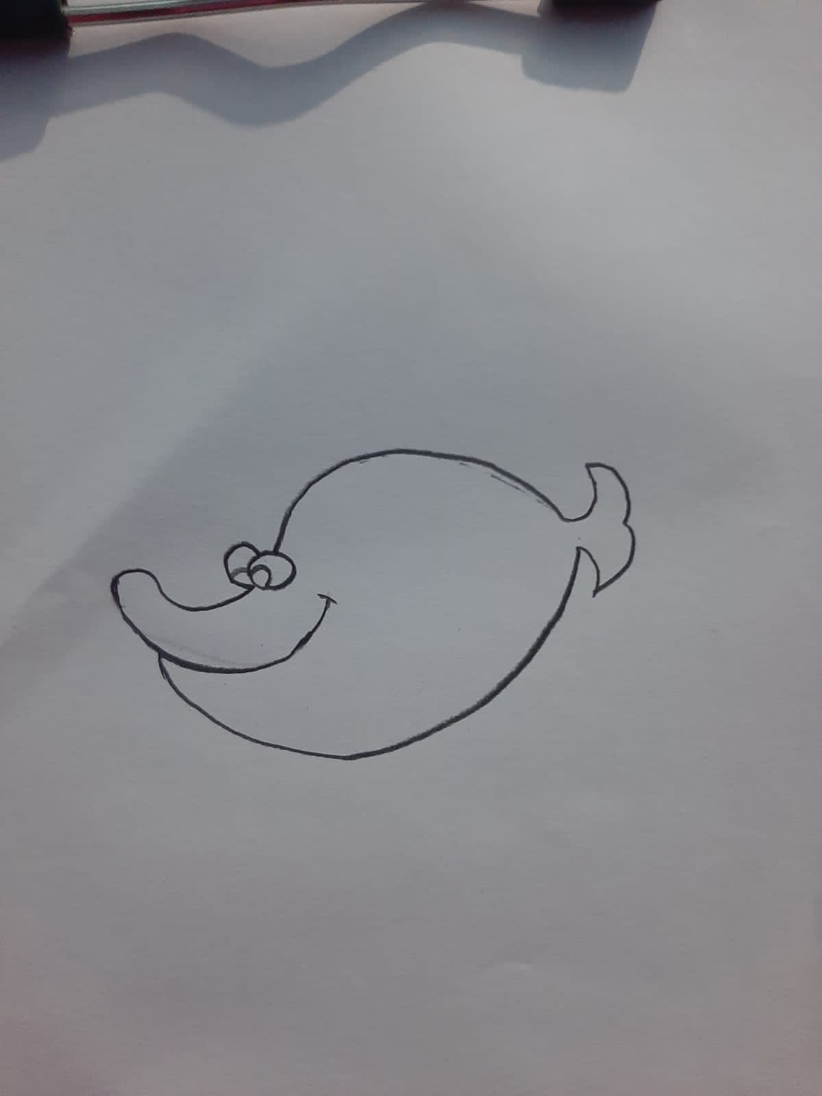 First we will draw the head and front part of the fish. For this, a lip shape should be made with a pencil.