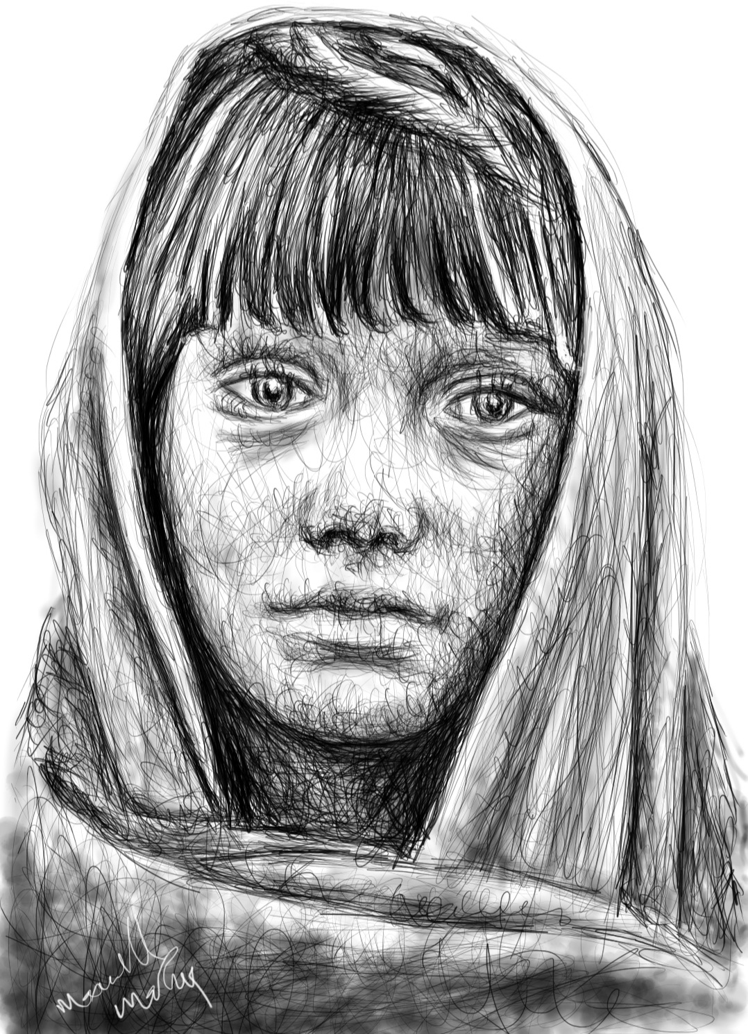 The drawing was done with AutoDesk sketchbook application using scribble style. My steps can be seen below: