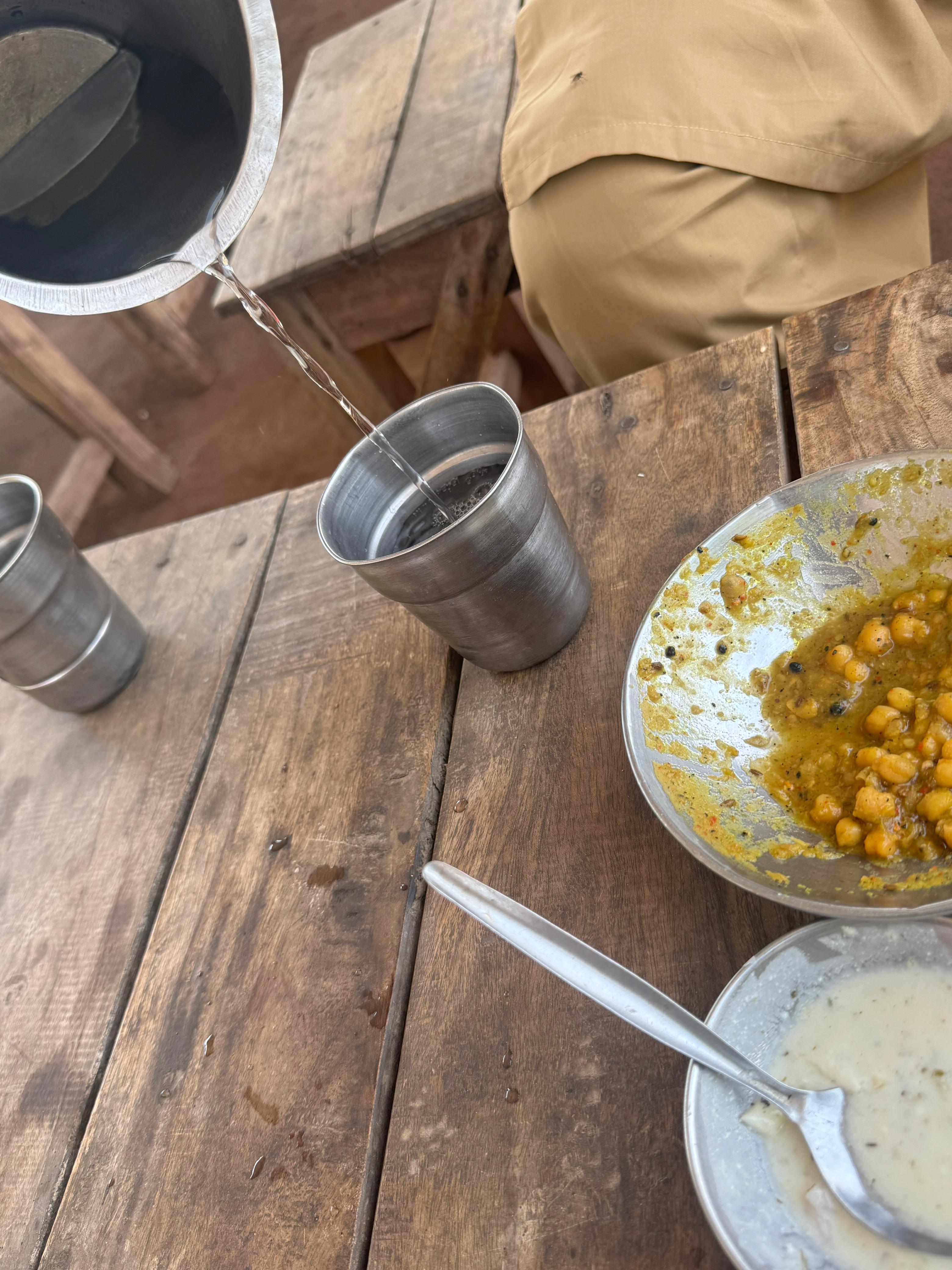 Along the canal, there are many food stalls where people come to eat. The most popular items are chickpeas (channay) and naan. These are freshly prepared and very tasty, so people enjoy eating them a lot. It is a traditional and local type of food.