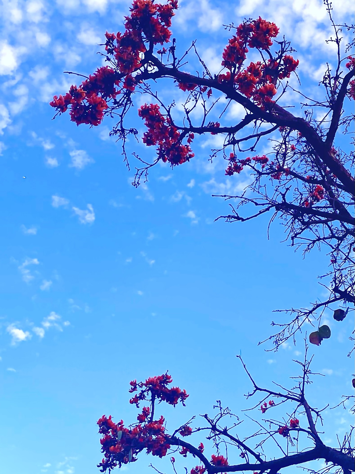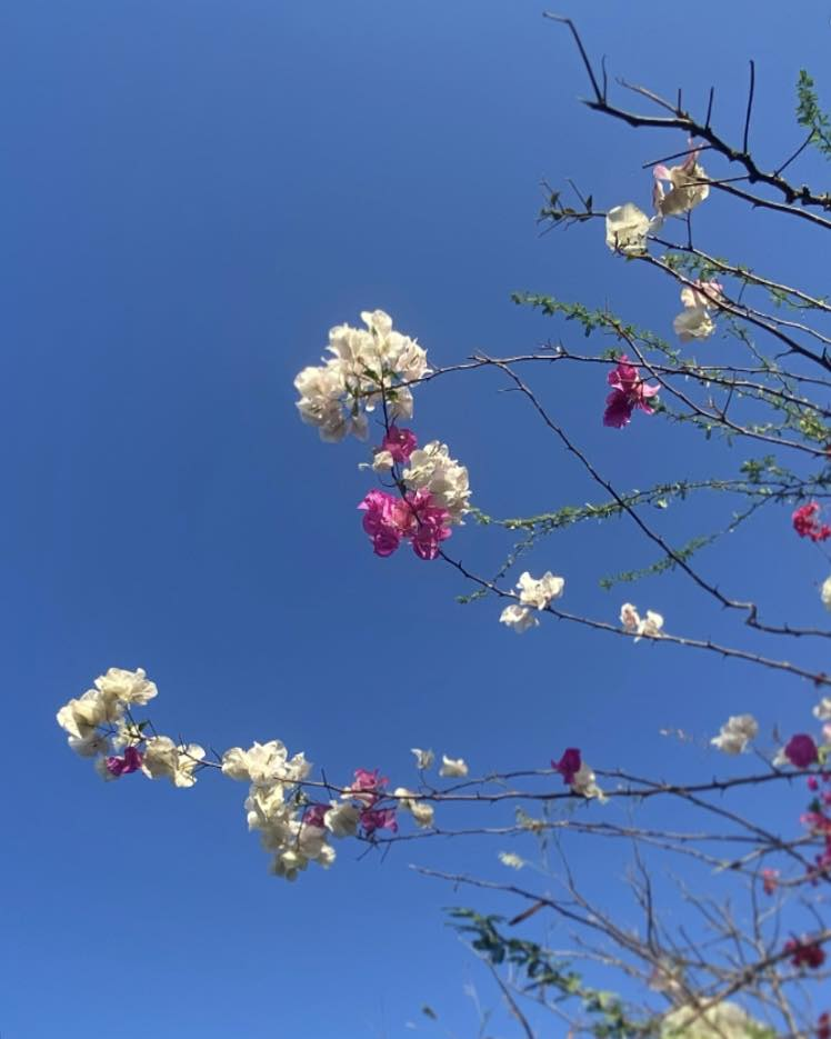 Standing beneath that endless blue, surrounded by the fleeting perfection of a bloom, we are reminded that sometimes, the simplest things—a patch of color against the horizon—are the most magnificent.