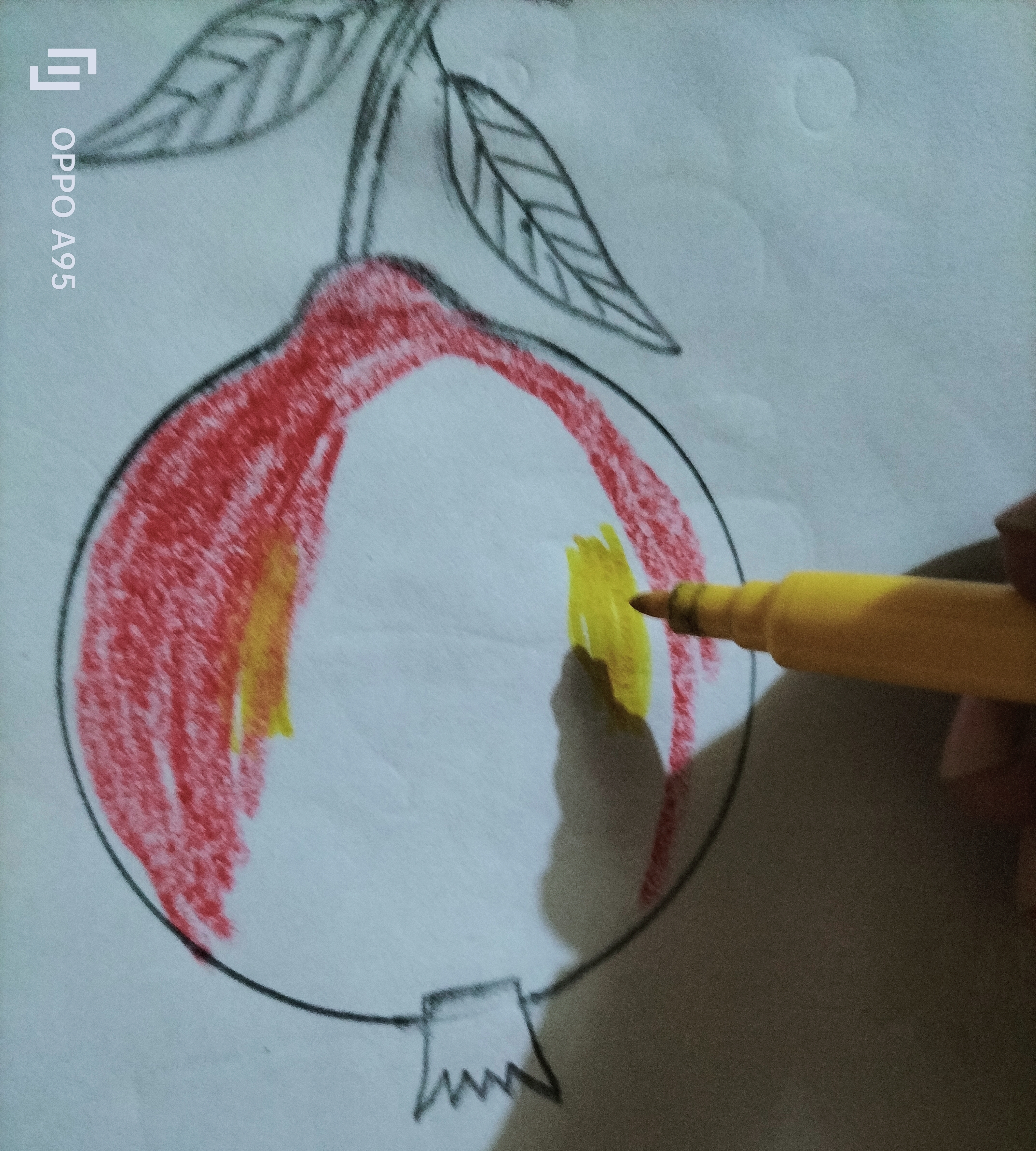 এখন বেদানা লাল কালার করে নিয়েছি। বেদানার মাঝে দু পাশে হলুদ কালার করে নিয়েছি একটু তাতে করে দেখলে মনে হবে পাকা বেদানা।