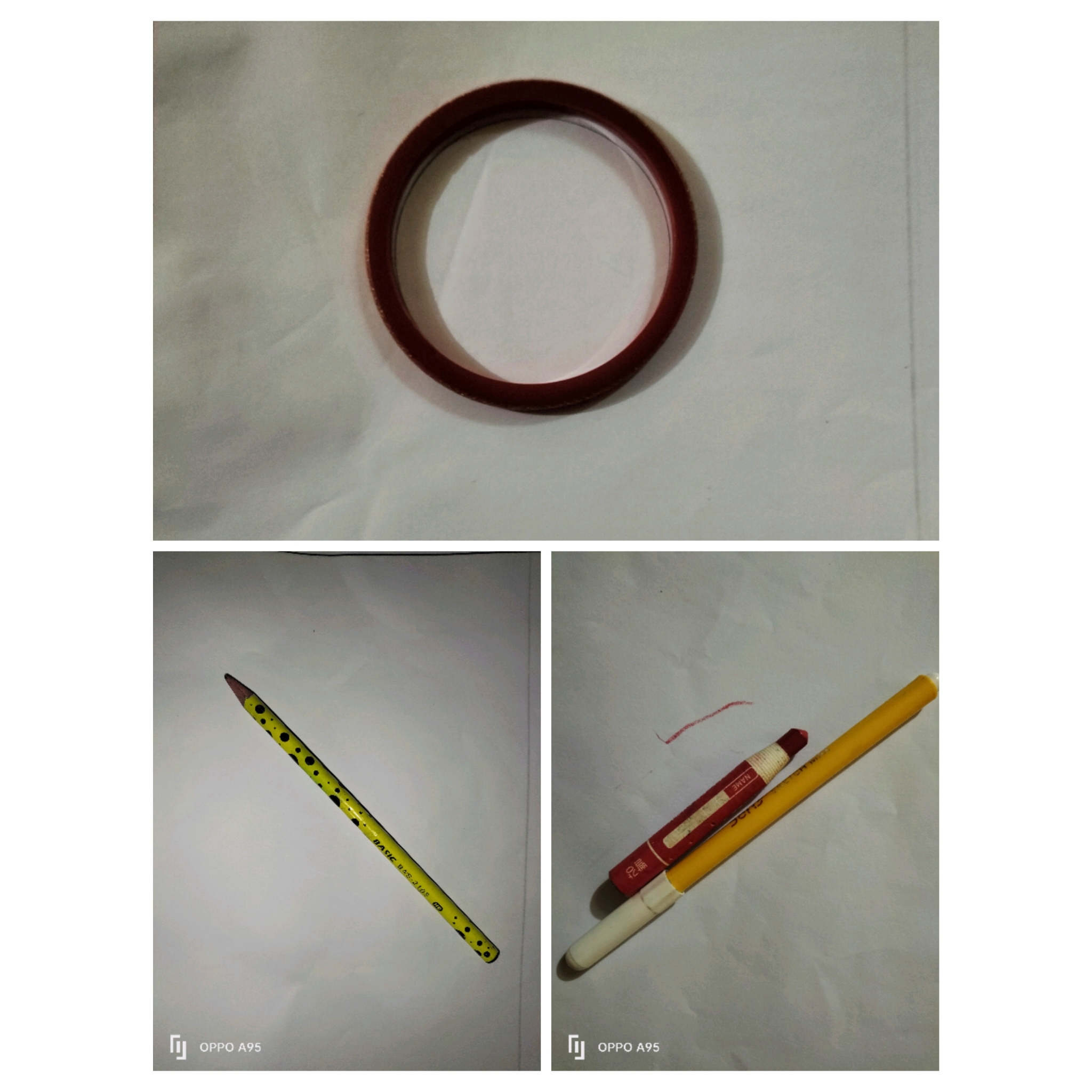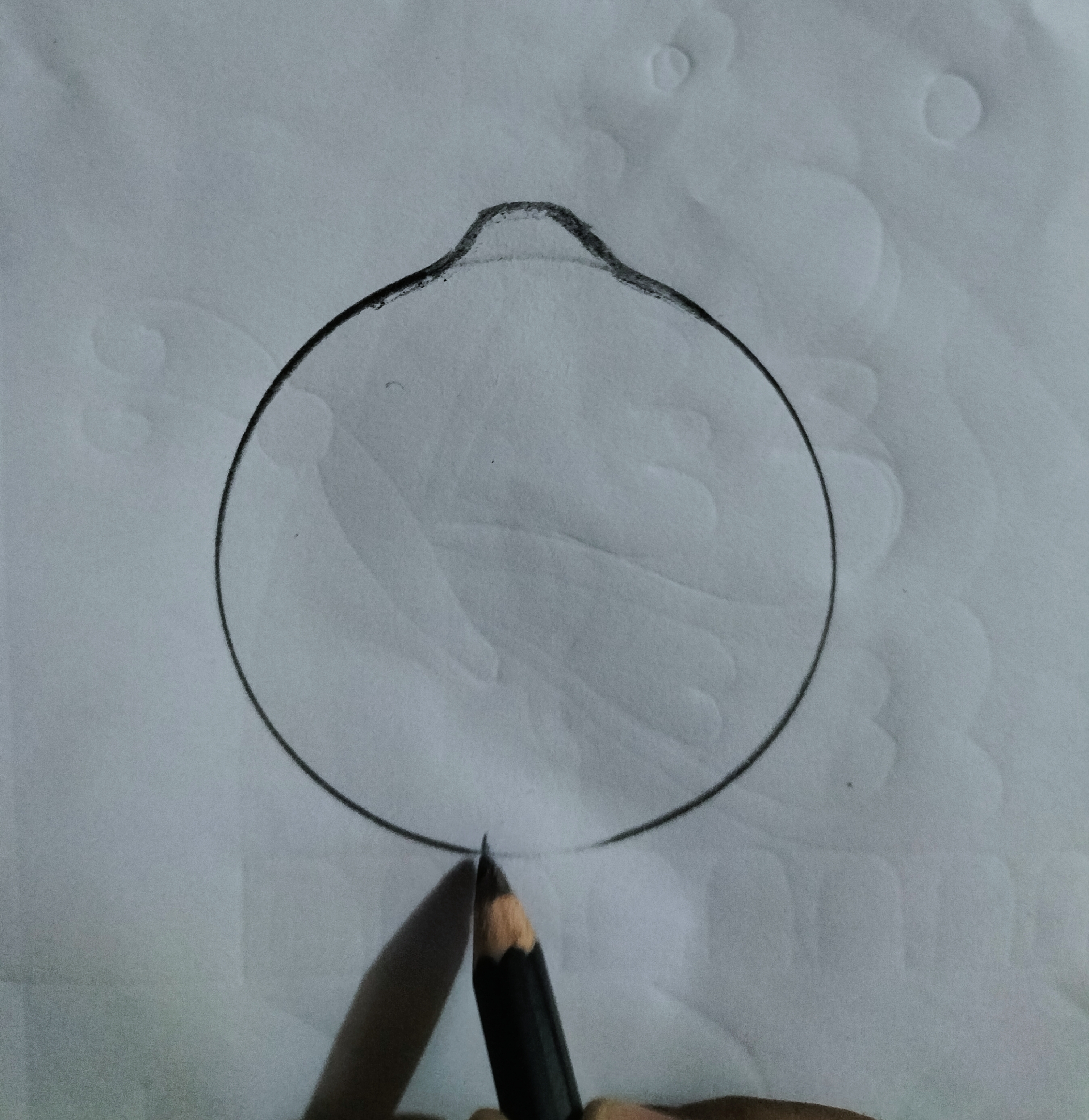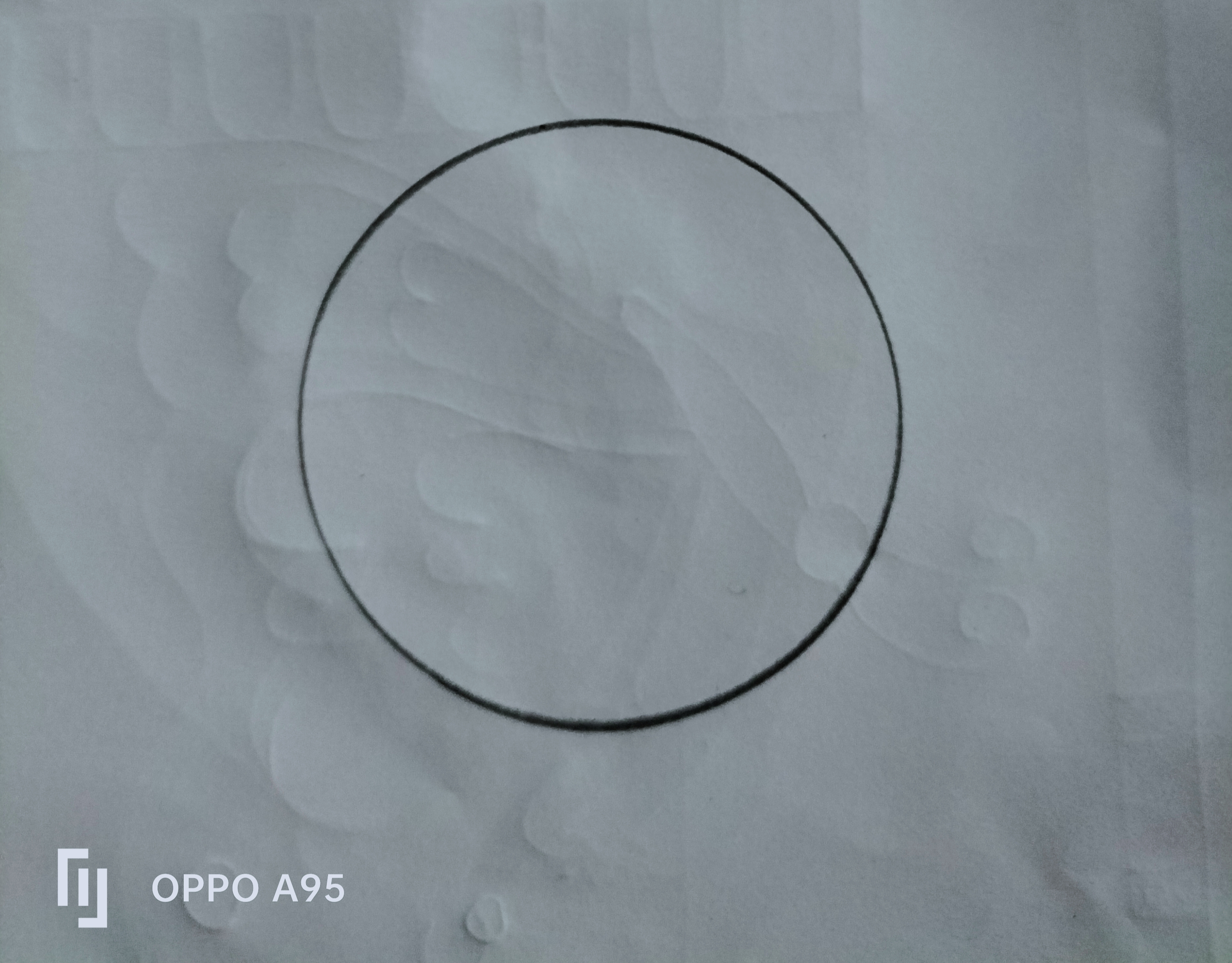 প্রথমে একটি খাতায় চুড়ির সাহায্যে বৃত্ত এঁকেছি ও বৃত্ত নিচে ও উপরে দাগ মুছে দিয়েছি রাবার দিয়ে।