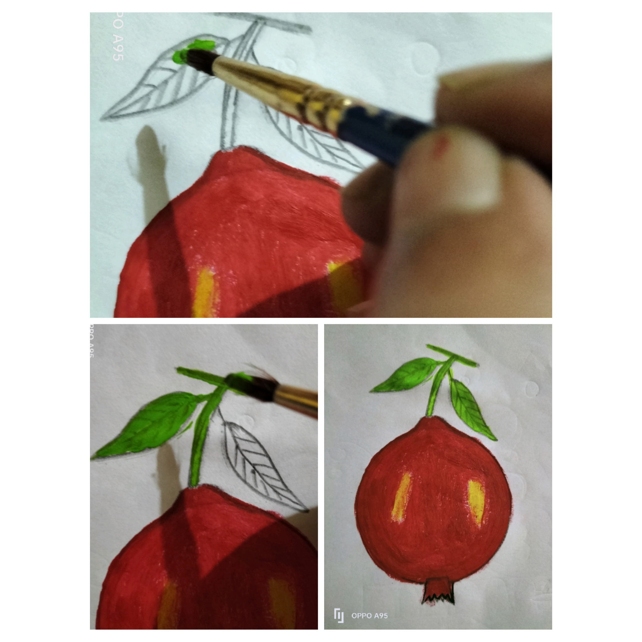এখন বেদানার পাতা ও ডাল সবুজ কালার করে নিয়েছি।