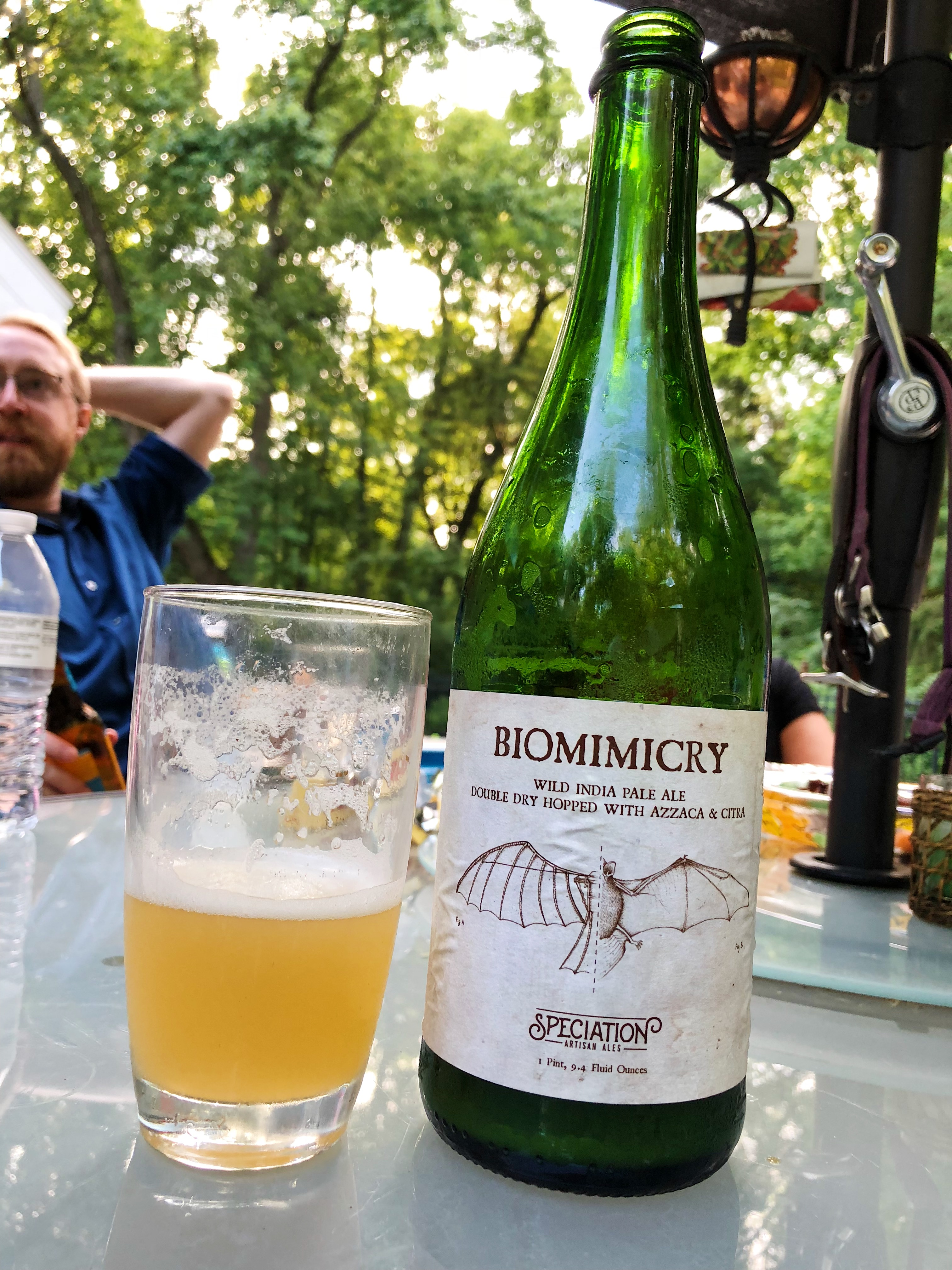 Wow, this is one dope ass beer! Biomimicry (2017) by Speciation Ales.Last year they introduced Biomimicry, an IPA/saison hybrid fermented with their house cultures, and dry-hopped with Belma and Amarillo. It was a beer they were proud of, and when they shared it with their brewer friends it was met with glowing reviews.