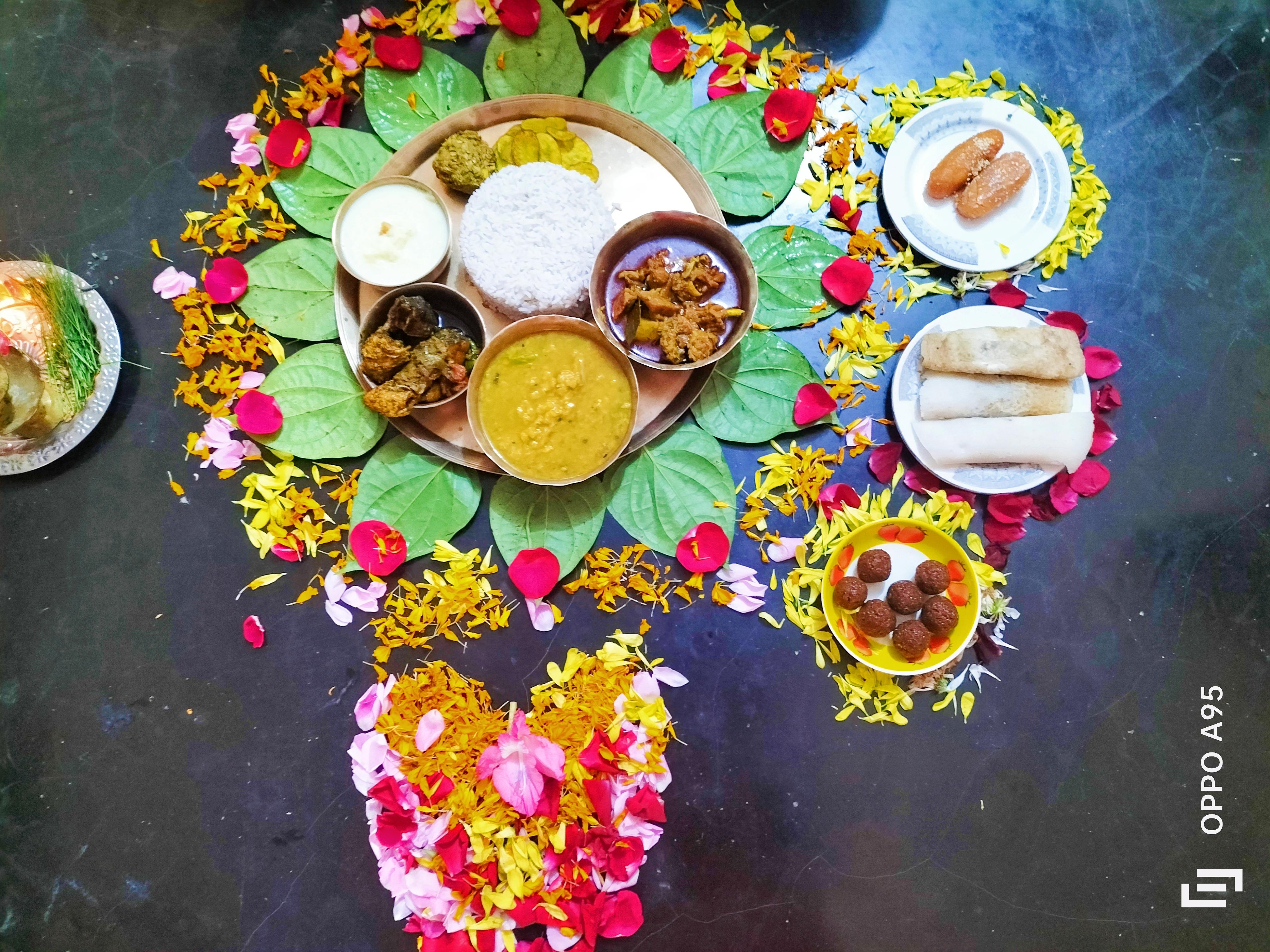 প্রথমে ভাইকে উপোস থাকতে বল্লাম ফোন করে।আইবুড়ো ভাত খেতে হলে উপোস থাকতে হয়।এরপর রান্না করলো দিদি মাছ,খাসির মাংস,বুটের ডাল,আলু ভাজা,কলার মোচার ঘন্ট।আমি করলাম পাটিসাপটা পিঠাও পায়েসও নারিকেলের নাড়ু। মিষ্টি। কেন জানি আজ পিঠা করতে গিয়ে ঝামেলা পোহাতে হলো।পিঠাগুলো আটকে যাচ্ছিল।যাইহোক কোনমতে করলাম পিঠা।