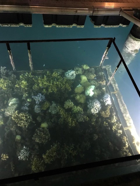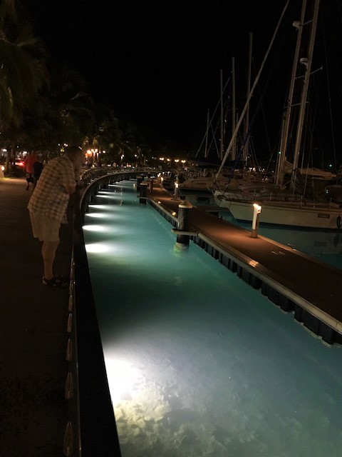 An evening walk on the boardwalk where the water is illuminated so that you can enjoy viewing a coral garden.