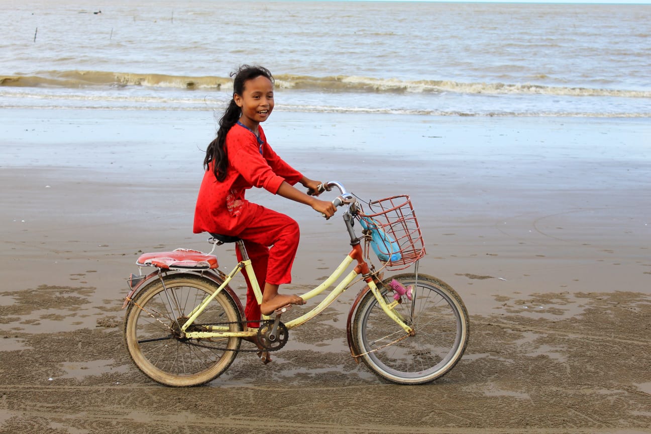 Berm di tepi pantai dengan sepeda santai.