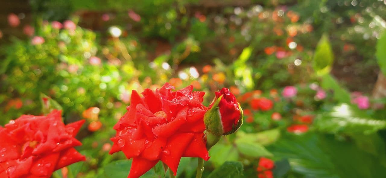 Every morning I sit on a chair on my veranda and looking at the beauty of this flower shrubbery for few minutes. Not me, my mother's effort gave this result. This piece of land is just in front of our door and in the early days we tried different kinds of plants there like green leaves, turmeric, and vegetables. But finally, my mother decided to plant rose balsam plants there.
