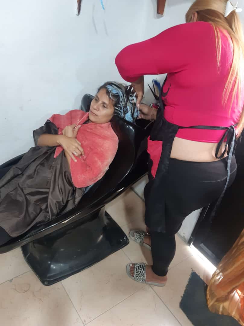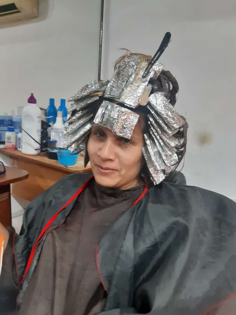 La hija disfruto el rato que tuvimos alli, despues camino a la peluqueria, quien es dueña la prima de mi esposo, estuvimos un momento conversando y alli me dice manos a la obra y me sente en la silla para que ella comenzara a peinarme el cabello y dividirlo para el proceso que lleva las mechas.