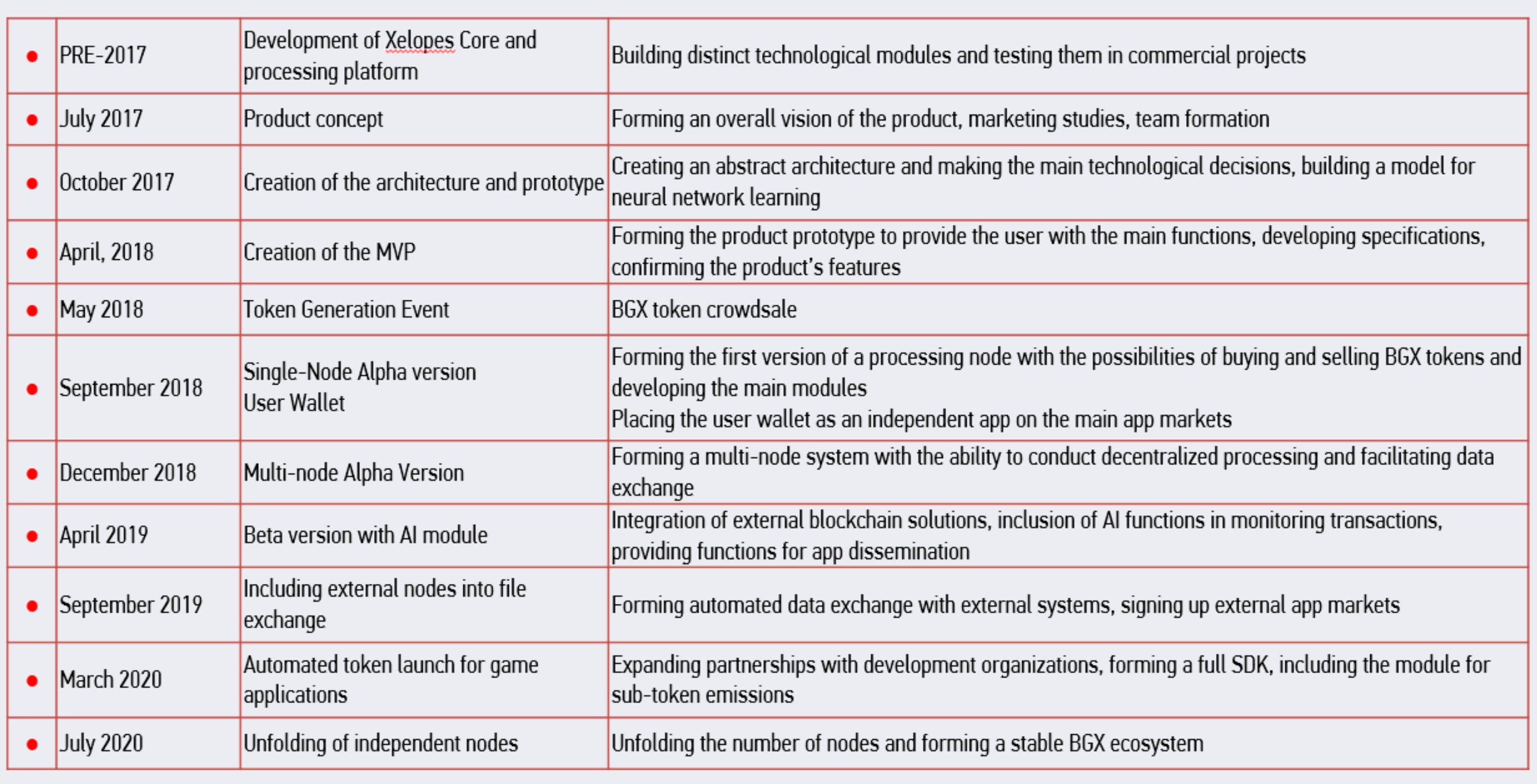 BGX menyediakan satu set layanan yang sepenuhnya dikontrol dengan berbagai fungsi dan integrasi crypto-currency yang efektif. Layanan yang ditawarkan memungkinkan pengembang menerapkan logika game seluler mereka dan fokus pada proses game, menggunakan kemampuan pemrosesan platform untuk mempercepat dan menyederhanakan pengembangan dan memajukan monetisasi. Kemampuan tambahan termasuk menggunakan potensi pertumbuhan token BGX untuk meningkatkan pendapatan dari permainan mereka.