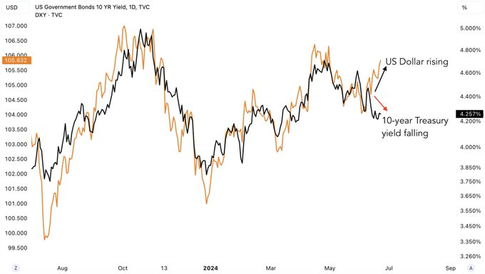 Bearish?haejin (89)in #bhjkn • 2 years ago USD and 10 yr yield are diverging....which one is correct?