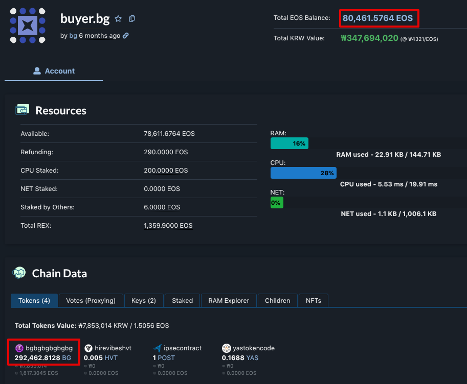 소각완료 후에도 바이백 계정에는 80,461eos가 적립중이고 BG토큰 또한 29만개 이상 적립중입니다.