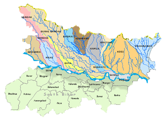 पटना से चार नदियां गुजरती हैं- गंगा, सोन, गंडक और पुनपुन नदी।