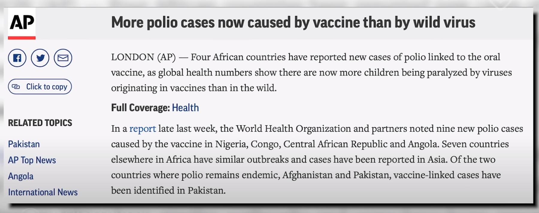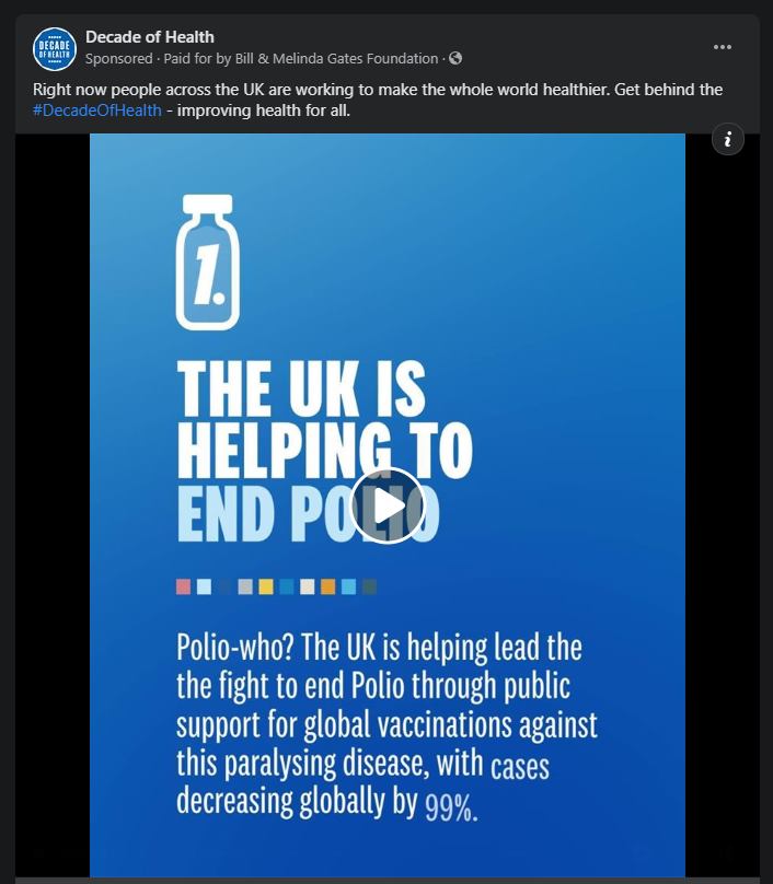 This sponsored ad popped up today in my feed, painting the picture that vaccinations are helping in the fight against Polio when in fact their polio vaccine is now responsible for 70% of global polio cases being the vaccine polio rather than the wild polio it was attempting to wipe out, and those vaccine induced polio infections are just as deadly as the disease they attempted to wipe out, maiming thousands of people a year.
