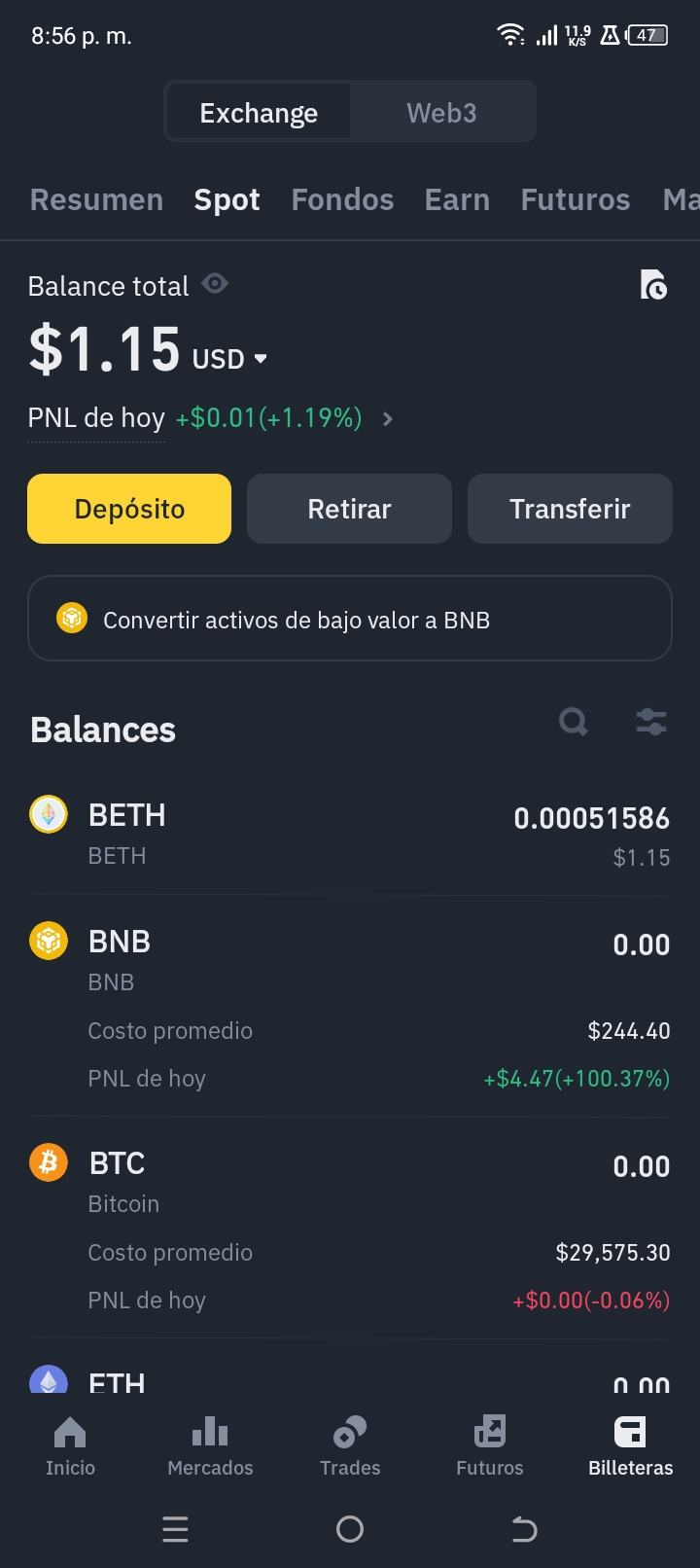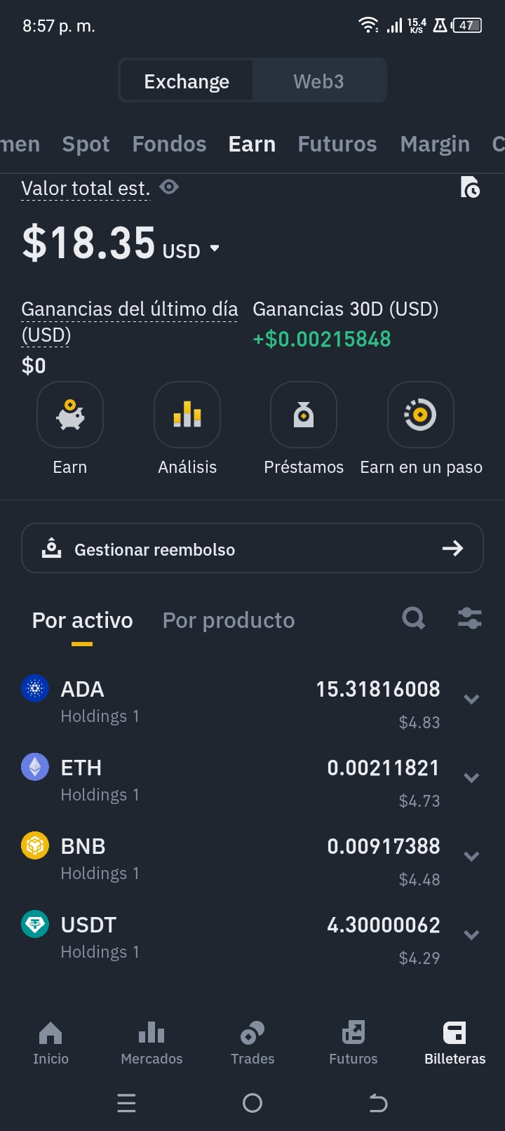 Progreso de billetera. Día 1adrianflores (36)in #binance • 2 years ago #ada #eth #usdt #bnb #beth #trading #lva