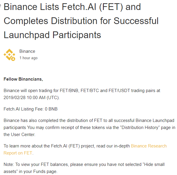 바이낸스 런치패드 fetch(fet) 코인 상장 된다네요steemCreated with Sketch.dengdeng (40)in #binance • 7 years ago (edited)바이낸스 런치패드로 진행된 fetch코인이 한국 시각으로 28일 19시에 상장 되네요. 장외에서 3배로 거래되고 있다는 소문이 있는데 런패때 구매성공하신 분들 기대가 될듯합니다. #fetch #fet #kr #cryptocurrency