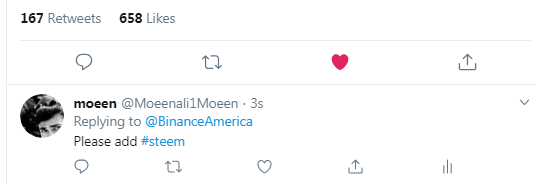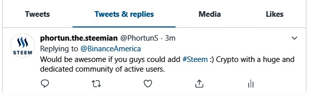 Comment under the above Tweet and ask for them to add #Steem and post your proof of work below to receive an upvote for your effort.