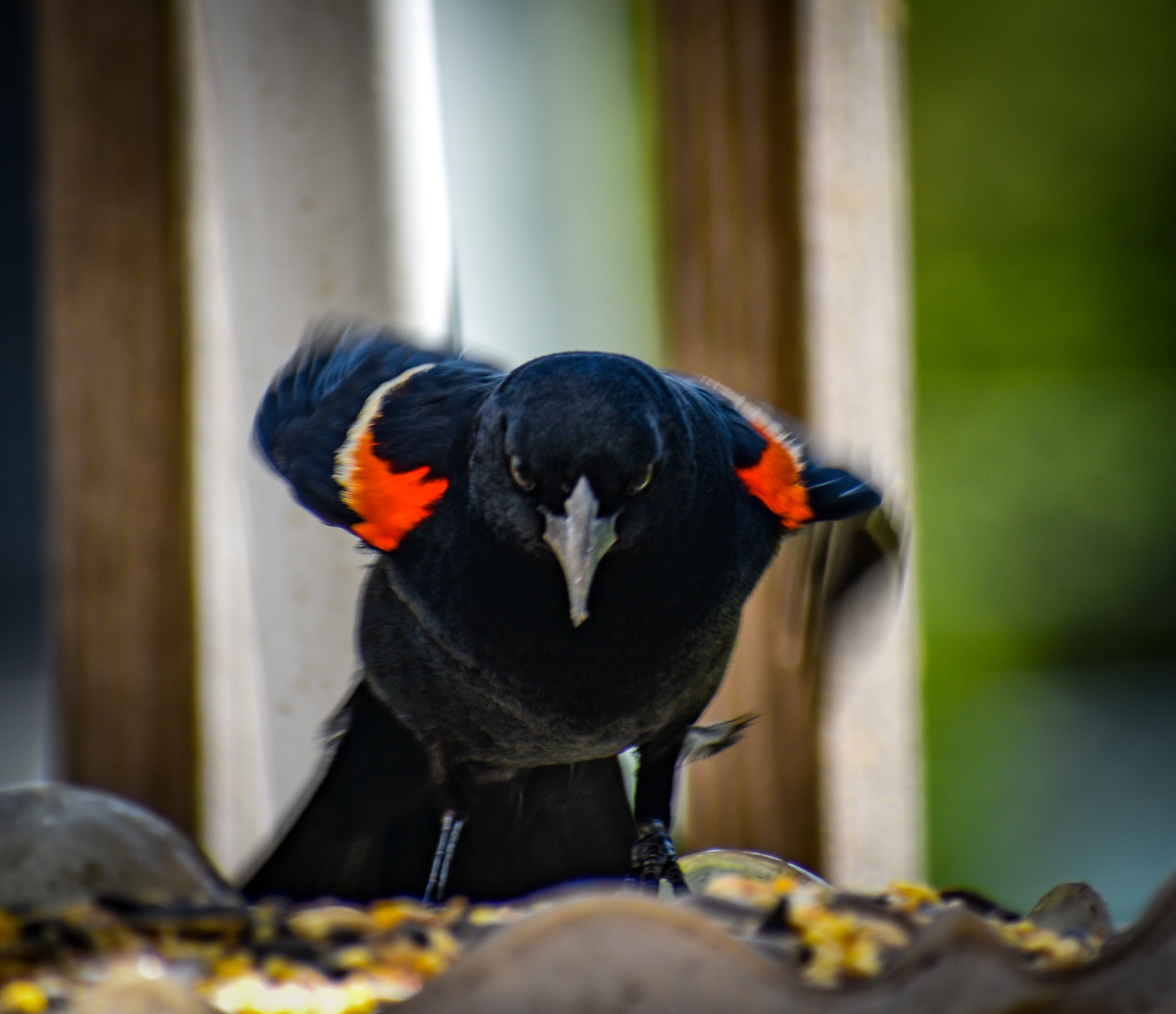 These are common where i live and i really like they way they look for some reason. These are a few pictures from summer when he came to feed on seeds. I got a few pics i like. He is a very photogenic little guy. The last one is him taking flight the second he started to leave. Hope you enjoy.