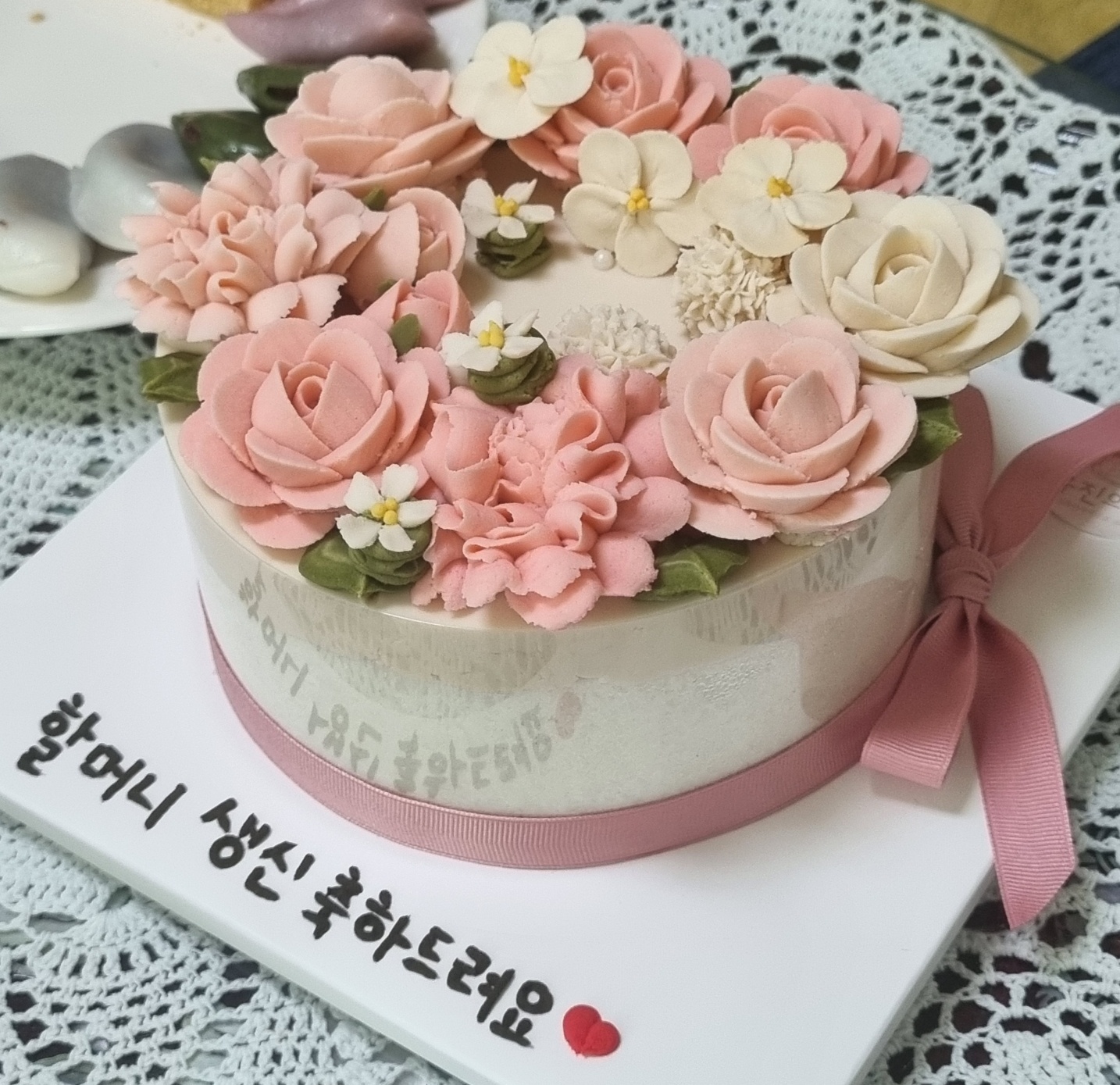케이크 짱 예쁨ppjjhh (34)in #birthday • 3 years ago (edited)할머니 생신 케이크 사촌언니들이랑 언니랑 같이 준비하고 오늘 픽업했는데, 실물 갑 ദ്ദി¯•ω•¯ ) 위에 꽃은 앙금이라서 달달 그 자체였지만 예쁘니까 봐줌 #grandmother