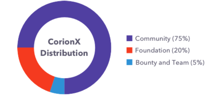 340,000,000 CorionX will be awarded to the community through the Stablecoin Movement, Initial Exchange Supply (IEO), exchange groups and Bounty and the Foundation.