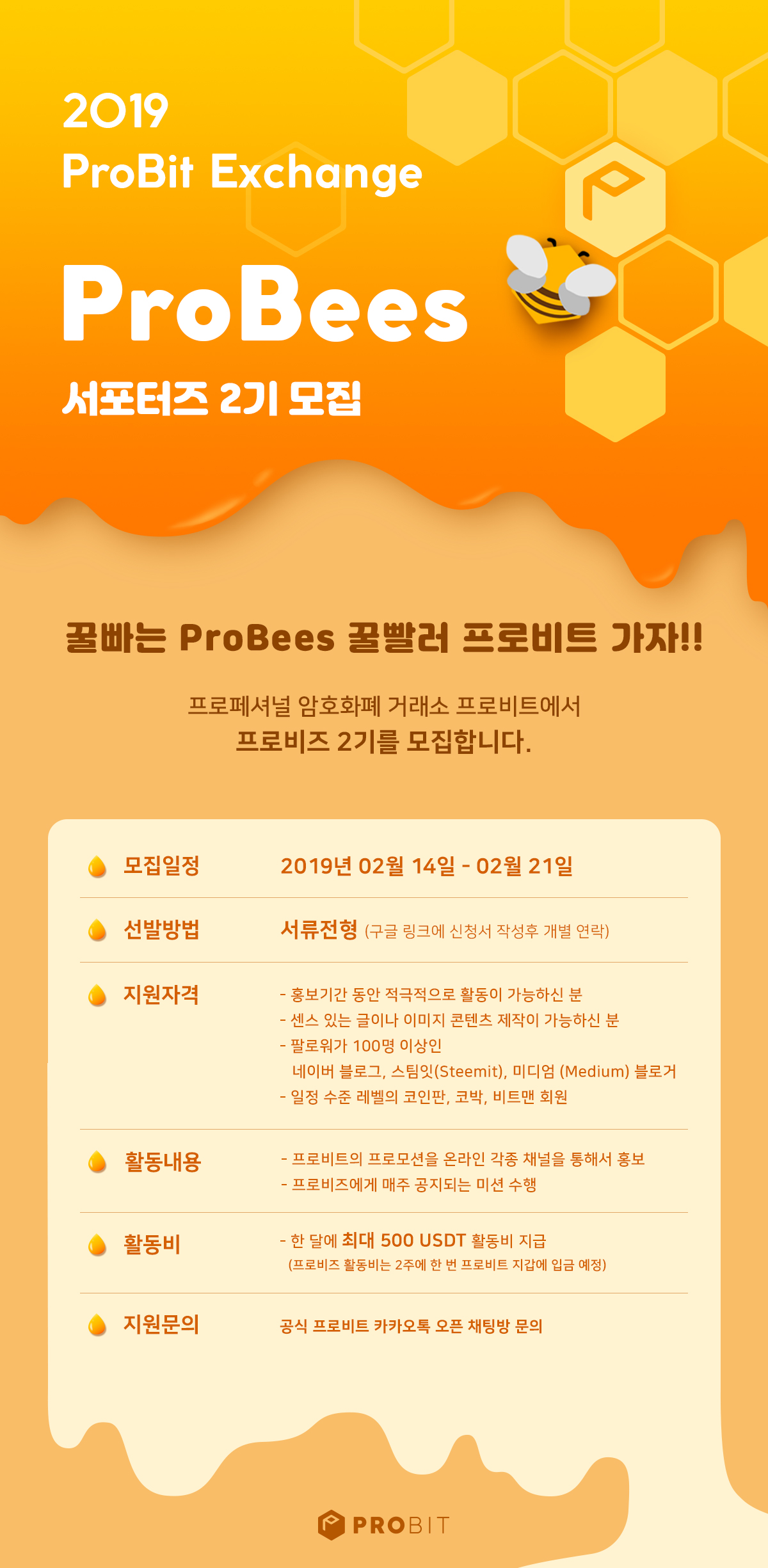 https://support.probit.com/hc/ko/articles/360023077892-2019-%ED%94%84%EB%A1%9C%EB%B9%84%ED%8A%B8-ProBees-%EC%84%9C%ED%8F%AC%ED%84%B0%EC%A6%88-2%EA%B8%B0-%EB%AA%A8%EC%A7%91-