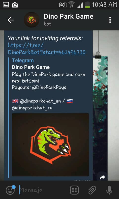 Bitcoin Free: DinoParkGame, a bot for Telegram
