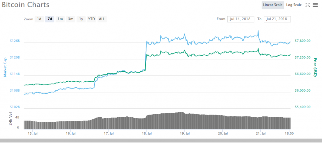 Quite recently bitcoin has had a nice rally from 6450 to 7352, nearly a thousand dollar gain. However I remain skeptical about the price action triggering a new bull run. This is because no significant news triggered this movement, making it a random market fluctuation. Now if a Bitcoin Etf gets approved on August 16 this will be a completely different story, however I just don't see any potential catalysis that would trigger a legitimate rally. Not saying the Bitcoin will go much lower (It probably won't, breaking even with mining costs), but bitcoin has the potential here to aimlessly wandering sideways for a while. No Bitcoin's not going to $50000 anytime soon but at least it might not go any lower and in this Bear market that's a plus.