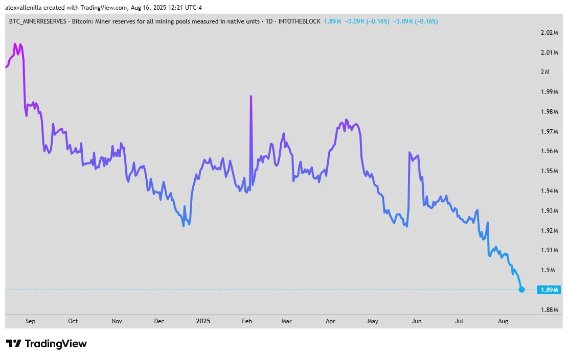 The amount of Bitcoin held by miners has dropped to a historic low of 1.89 million BTC, a level not seen since January 2010. Over the last year alone, their strategic stash has fallen by 5.26%, a trend that could completely change how the Bitcoin market works. The data shows they’re selling off their holdings at a rapid pace, a clear sign they’re taking advantage of Bitcoin’s high prices.