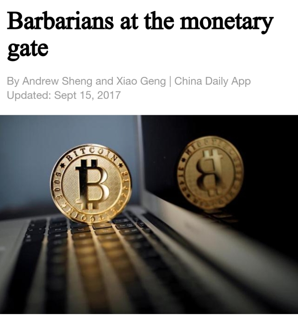 Of course, you would hear more about illegal fundraising, tax evasion, dark-web marketplace and etc... Diagram above showed the headline of an editorial article about negative aspects of Bitcoin published on China Daily, during the Chinese government imposing total ban on Bitcoin in Sept. 2017.