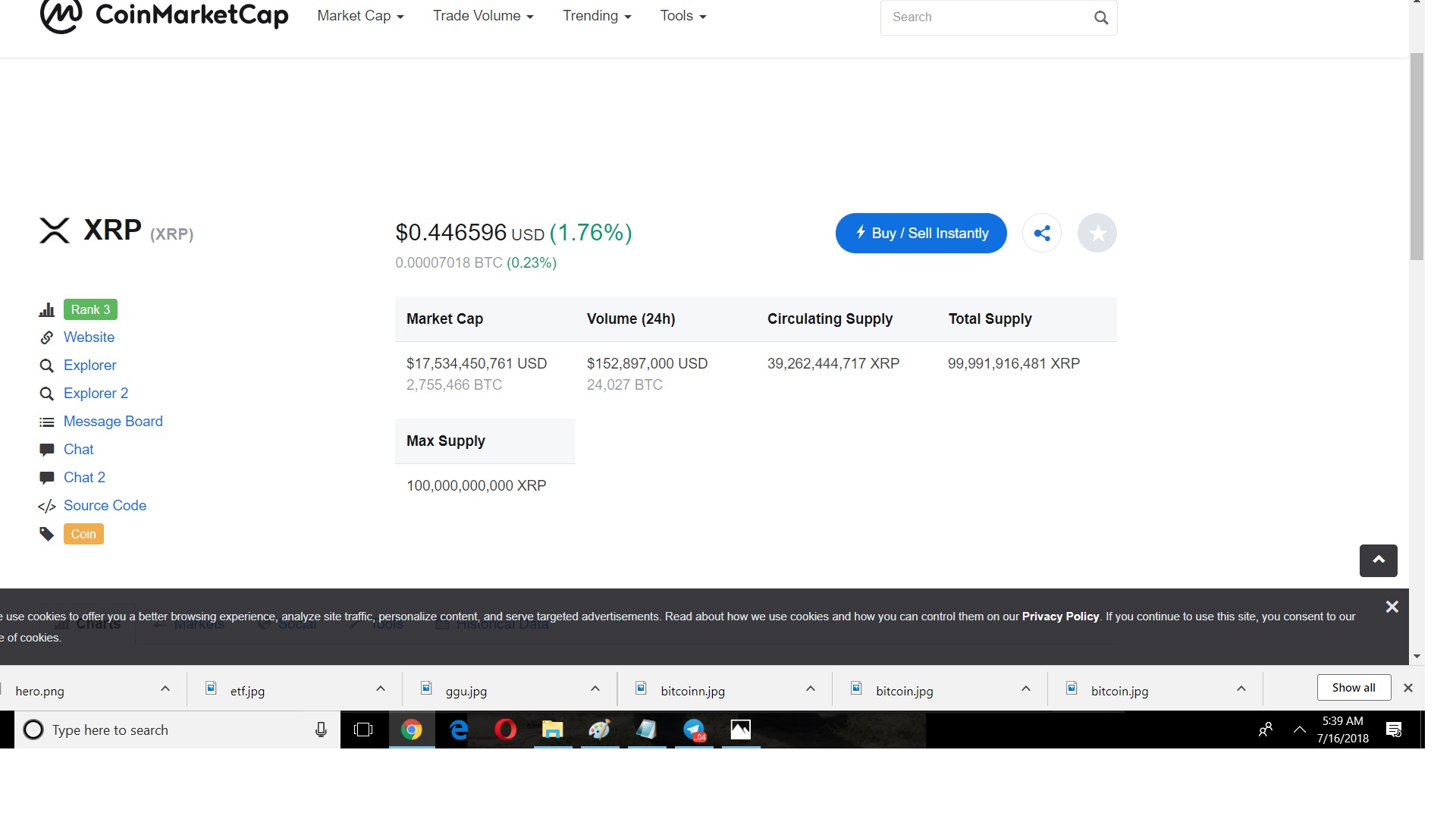 Basically it is now 0.44$ but hold on guys ripple is one of the most profitable and safest coin ...don't forget this thing guys and ripple comes to move it has gone from 0.27$ to $3 in couple of days .