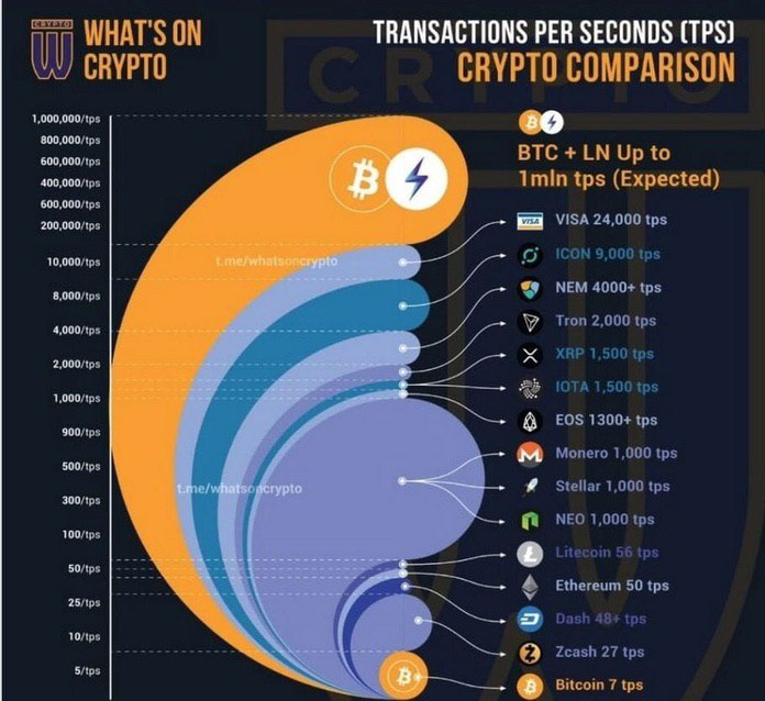 TRANSACTIONS PER SECONDS CRYPTO COMPARISONbtc4breackfast (52)in #bitcoin • 7 years ago BTC LIGHTINGNETWORK 1 000 000 TPS !!! visa sucks LTC lightingnetwork how many tps ???? #lightingnetwork #btc #visa #tps