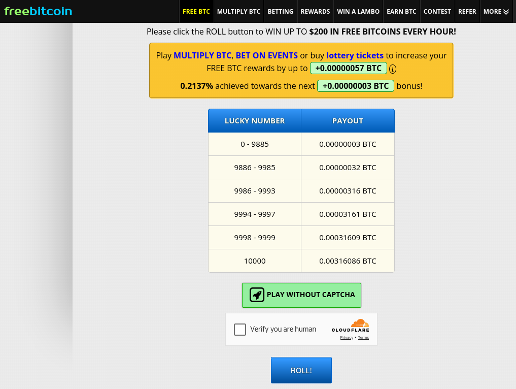 But, as you can see, they are still giving out 3 satoshis per spin.