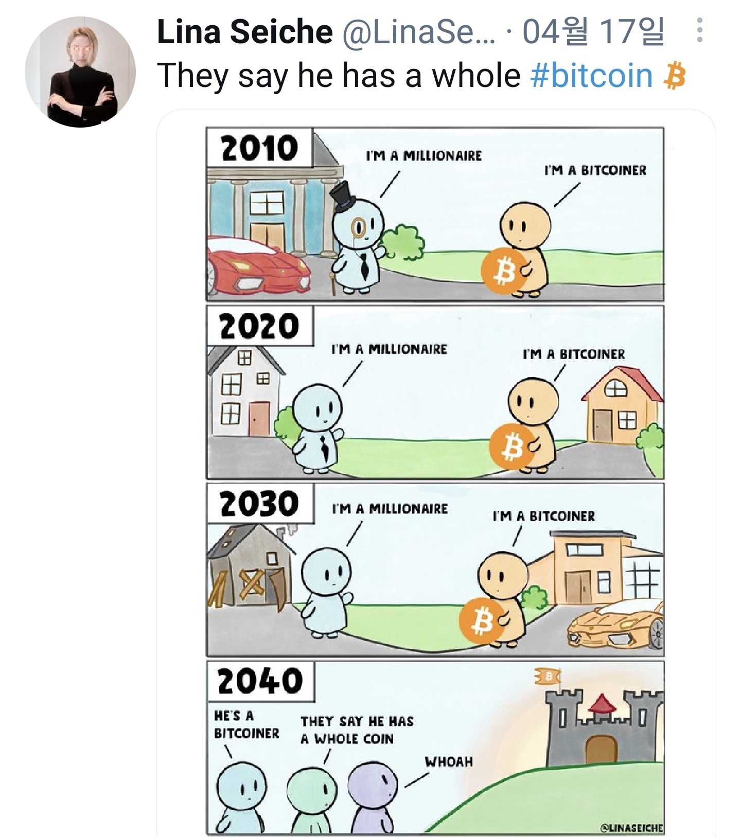 강남,비트,저스틴chunseungho (78)in #bitcoin • 5 years ago 그냥 흔하고 간단한 삽화같지만 이렇게 진행되서 10여년 뒤에는 비트코인 사는게 힘들지도 모른다. 강남땅 100배 올랐다고 비싸다고 한게 90년대 이전이라는데 20여년 지난 지금을 그때는 상상이나 했을까 그러니 지금 비트코인 사는것이 강남땅 사는 것과 같다는 말도 하나보다. 저스틴 선은 요새 입이 귀에 걸렸겠다. 12월에 트론 1달러 약속이나 지켜줬으면...
