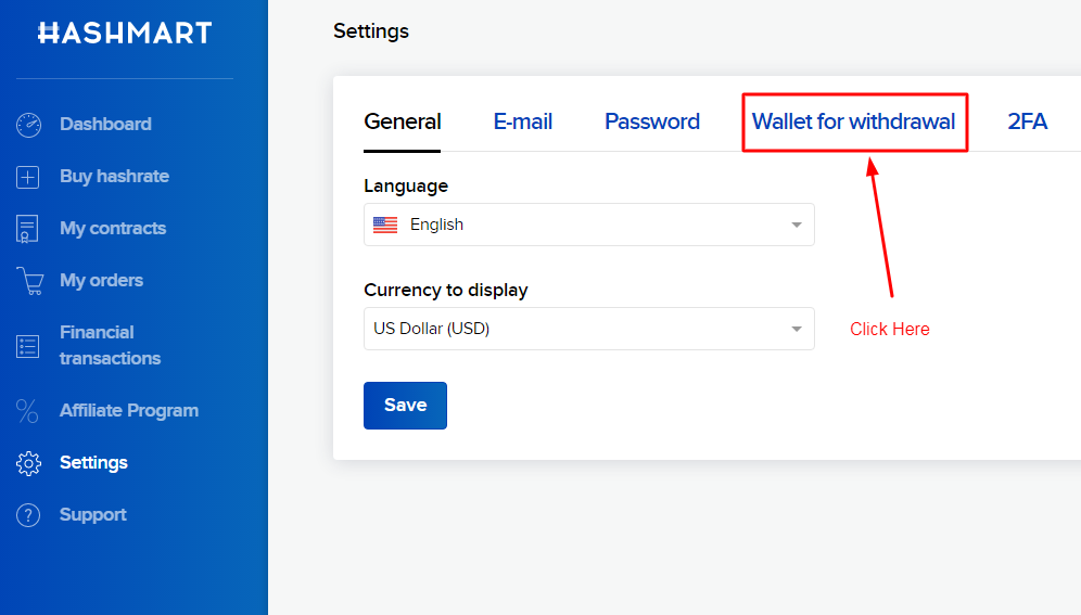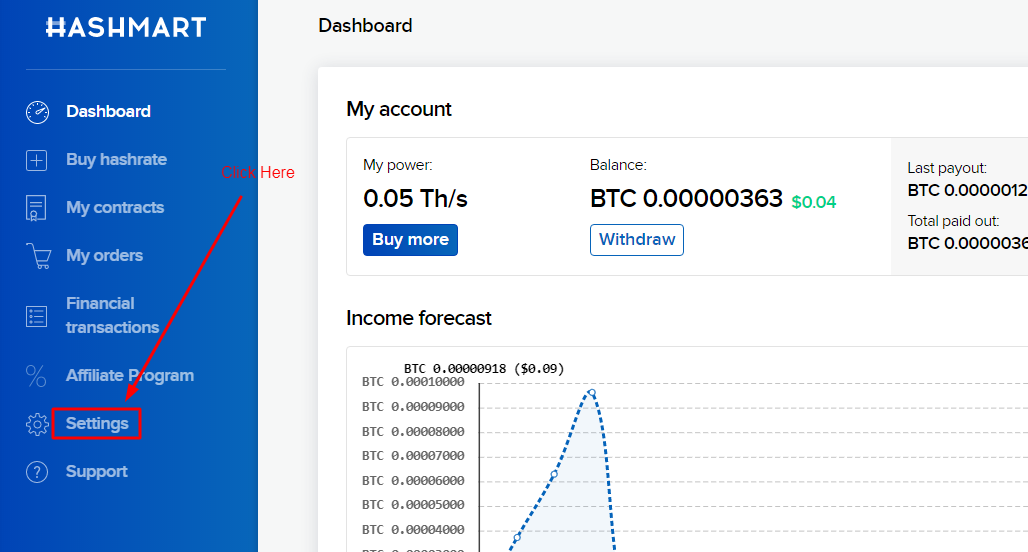 Although Hashmart has daily payout activated, however it requires a minimum 0.01 BTC balance before the withdrawal. So with a small amount of hash-power, it will take a long time for you to be eligible for the payout. If you don't want to withdraw manually, you can set up the automatic payout option. Here are the steps to activate automatic payout: