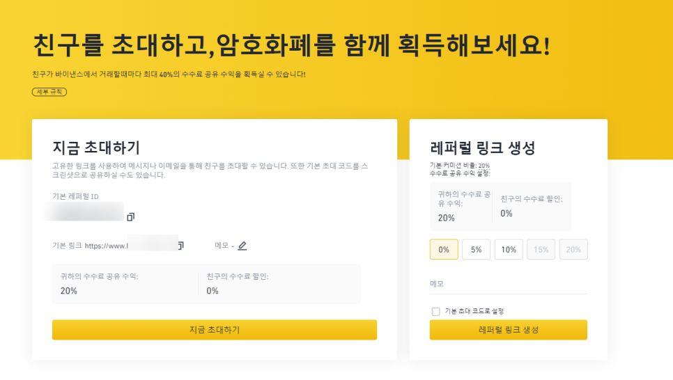 쉽습니다. 여기서 지금 초대하기를 누른 후 나오는 링크로 또 하나의 계정을 생성하면 여러분들은 바이낸스 셀퍼럴을 모두 마쳤습니다.